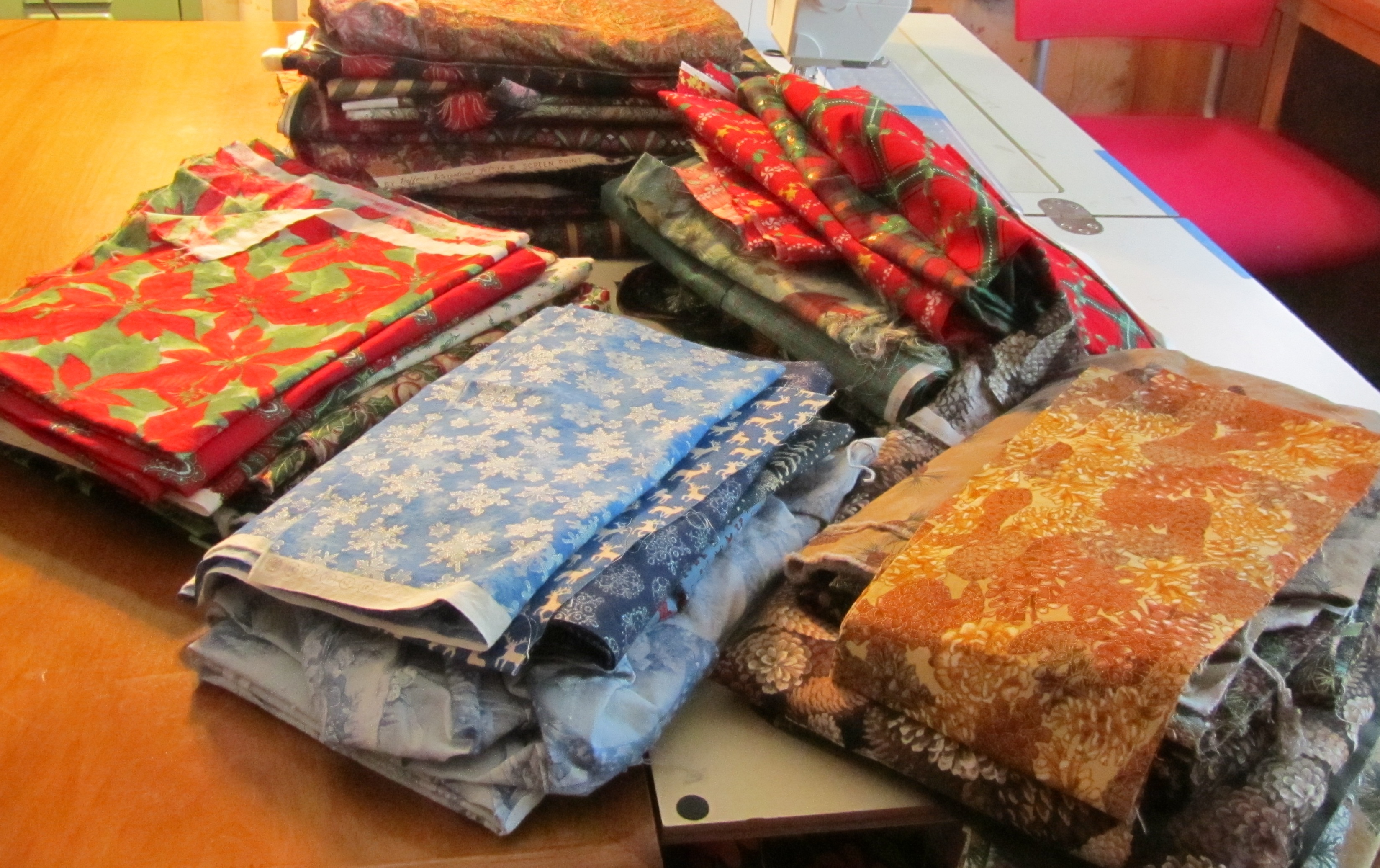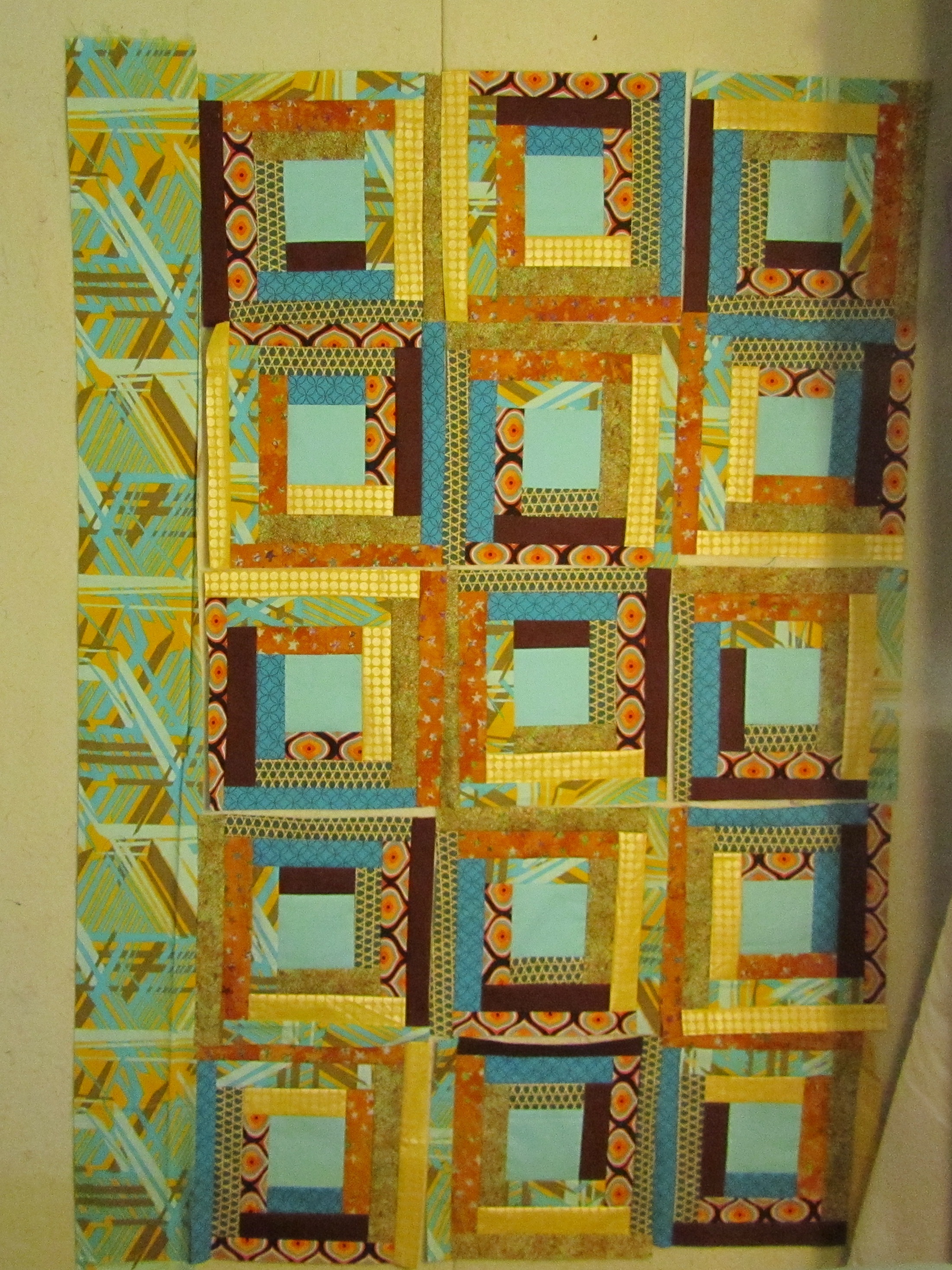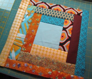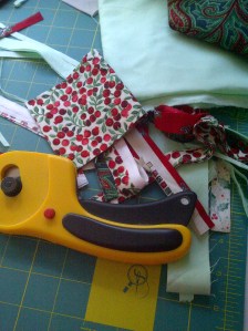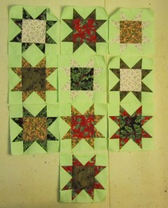 This was really a fun little quilt to make, for most of it. I couldn’t find my templates, but I quickly made new ones using my nifty purple Fiskars circles. The blocks came together quickly, I liked one of the first arrangements on the design wall, the top and back came together quickly, and the quilting went fine.