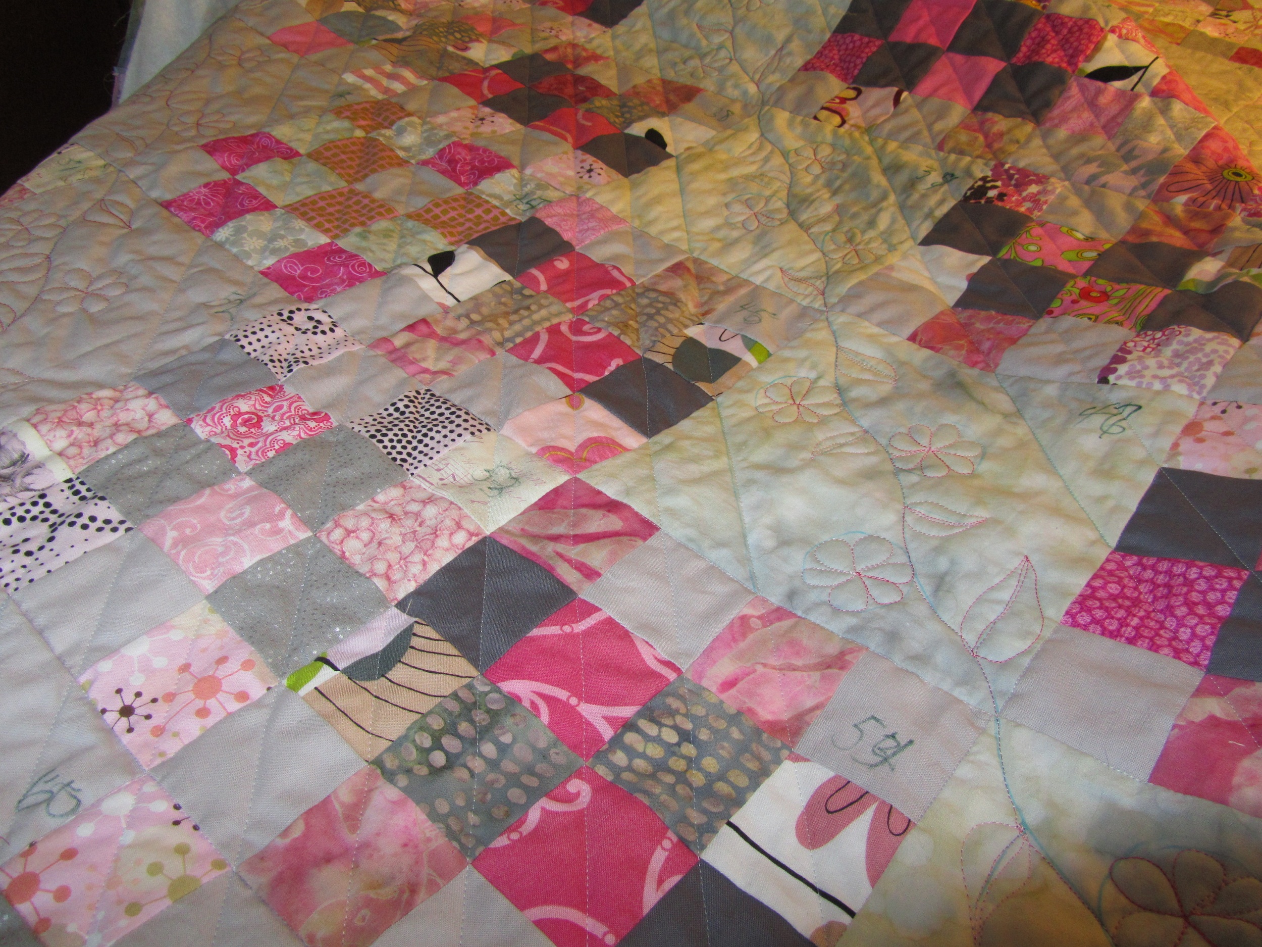 I am a big fan of machine quilt bindings, but I haven’t seen any I like as well as mine. Talking on Twitter, it seems that many people are doing something similar with decorative stitches (which can be really fun in certain applications), but I really like my blind stitched bindings. They look close to hand stitched, but are so much faster, and stronger, than hand work. Not to mention that I am far too impatient for much hand work these days. So little time, so many quilts to make!