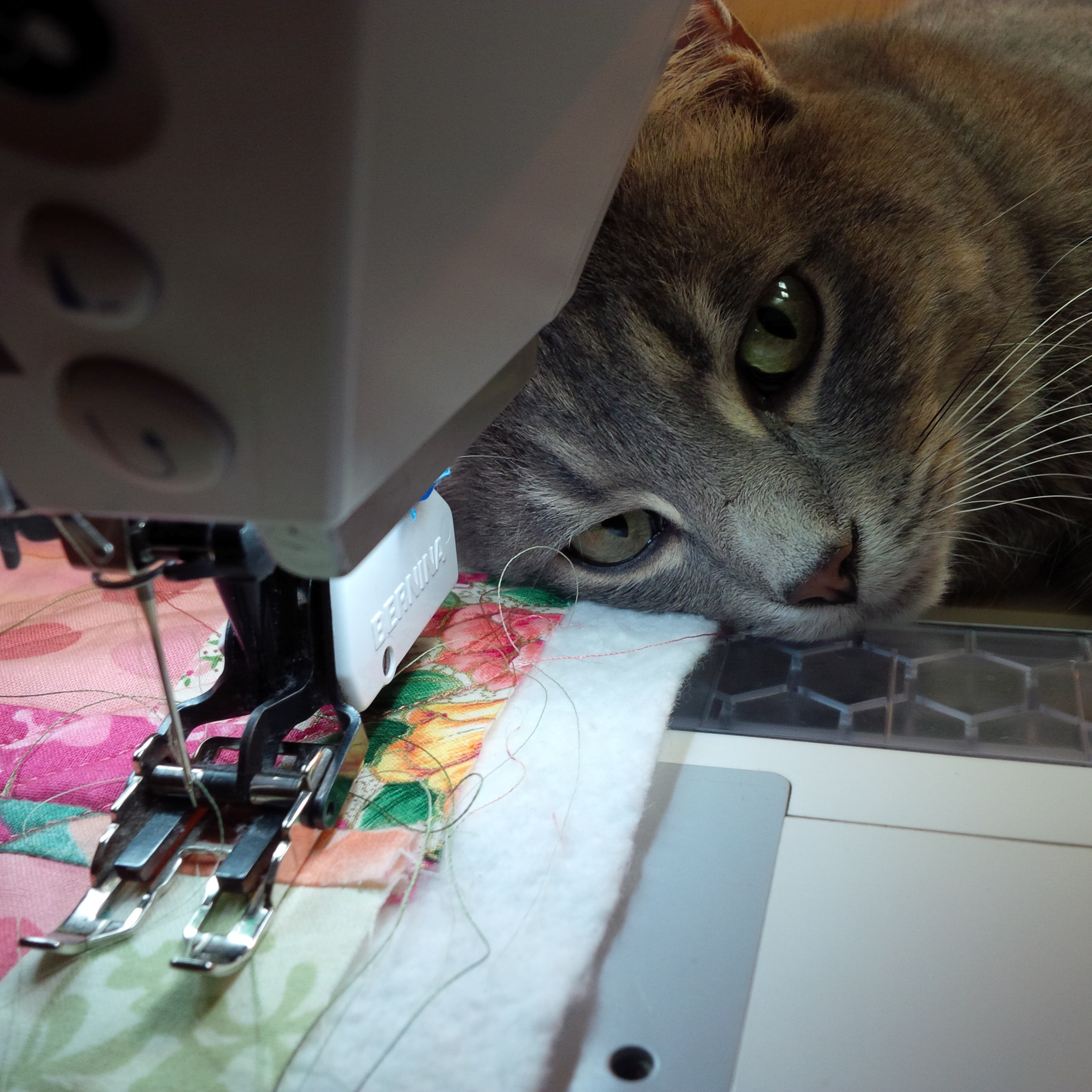 These two jokers were lots of help. Kind of takes the “free motion” out of free motion quilting!