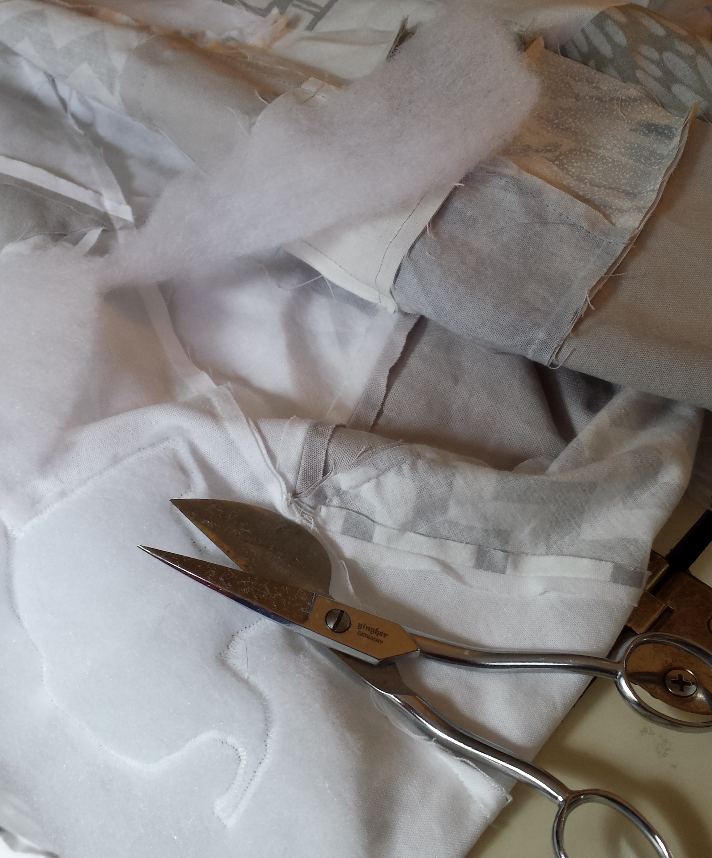 Using lots of fabric this week in the Disappearing Hourglass quilt, but the only finish is the Elephant baby quilt. Two yards came in yesterday from Spoonflower for my commissioned baby quilt.