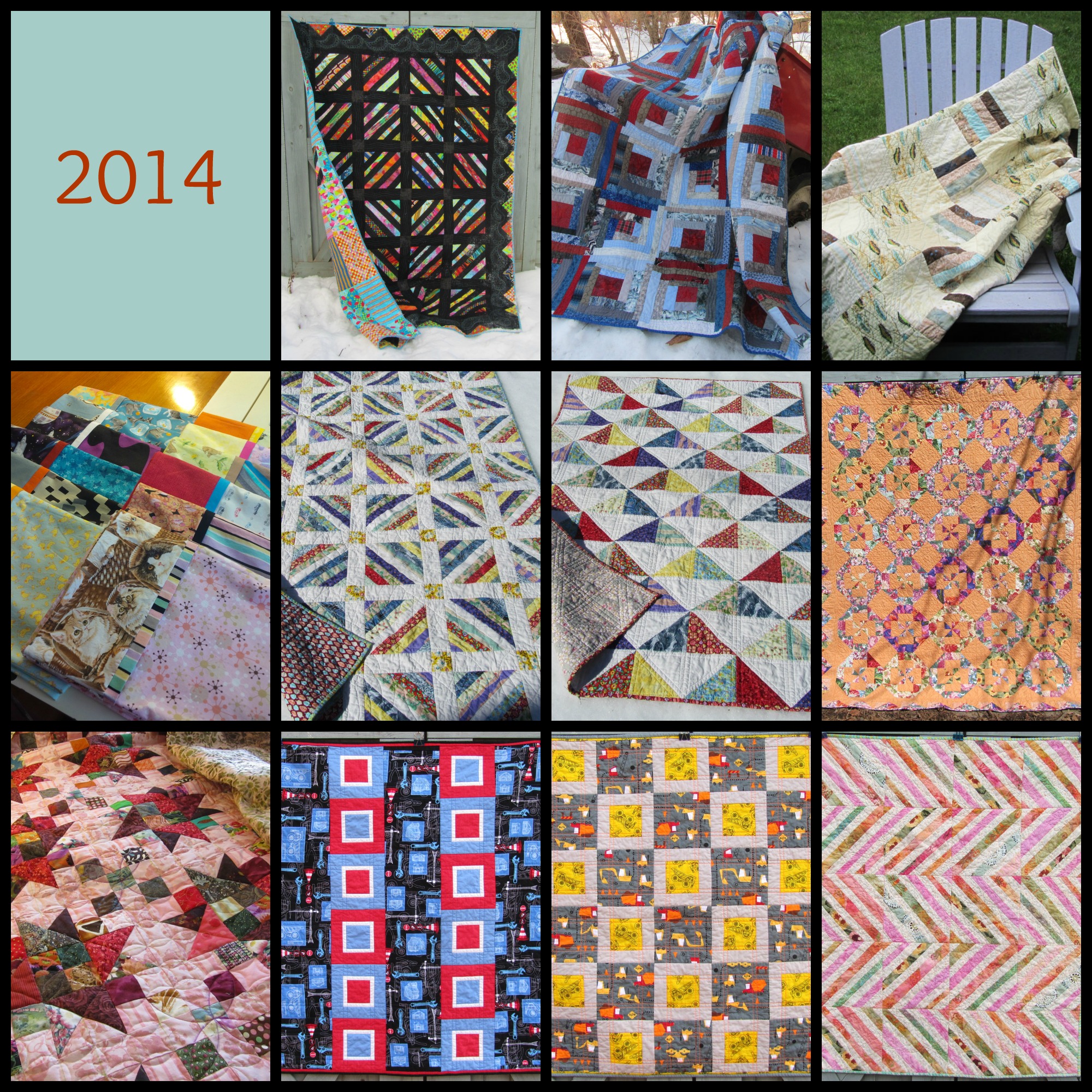 And I want to continue to reduce/turn over my stash. I’m not sure I can remove another hundred yards, though. I’ve already taken it down a lot, and I’m planning some very small quilts. I’m setting my goal at fifty yards, and if I do better than that, all the better. Fifty yards in ’15.