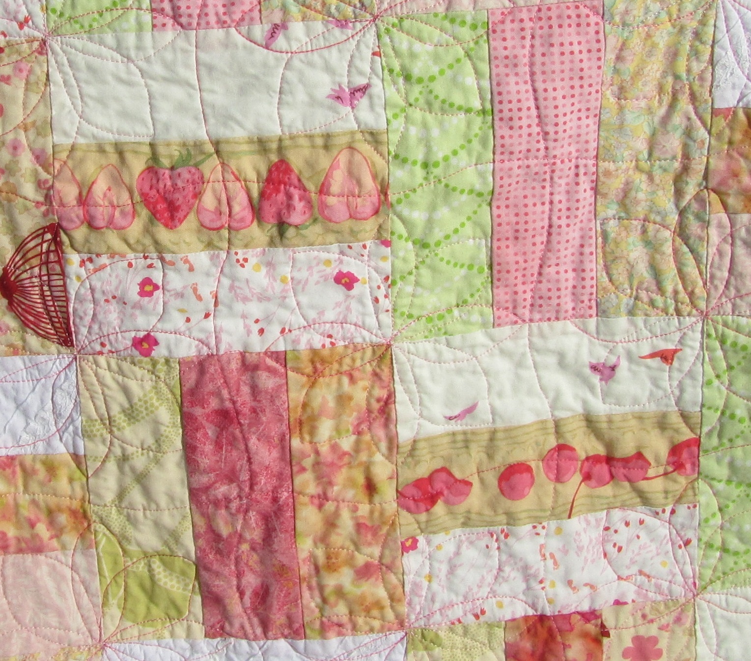 And (surprise!) I quilted it with feathers. I used aqua Bottom Line for all the quilting, top and bottom. It is very restful and soothing, and I was sad when I had no more areas to quilt.