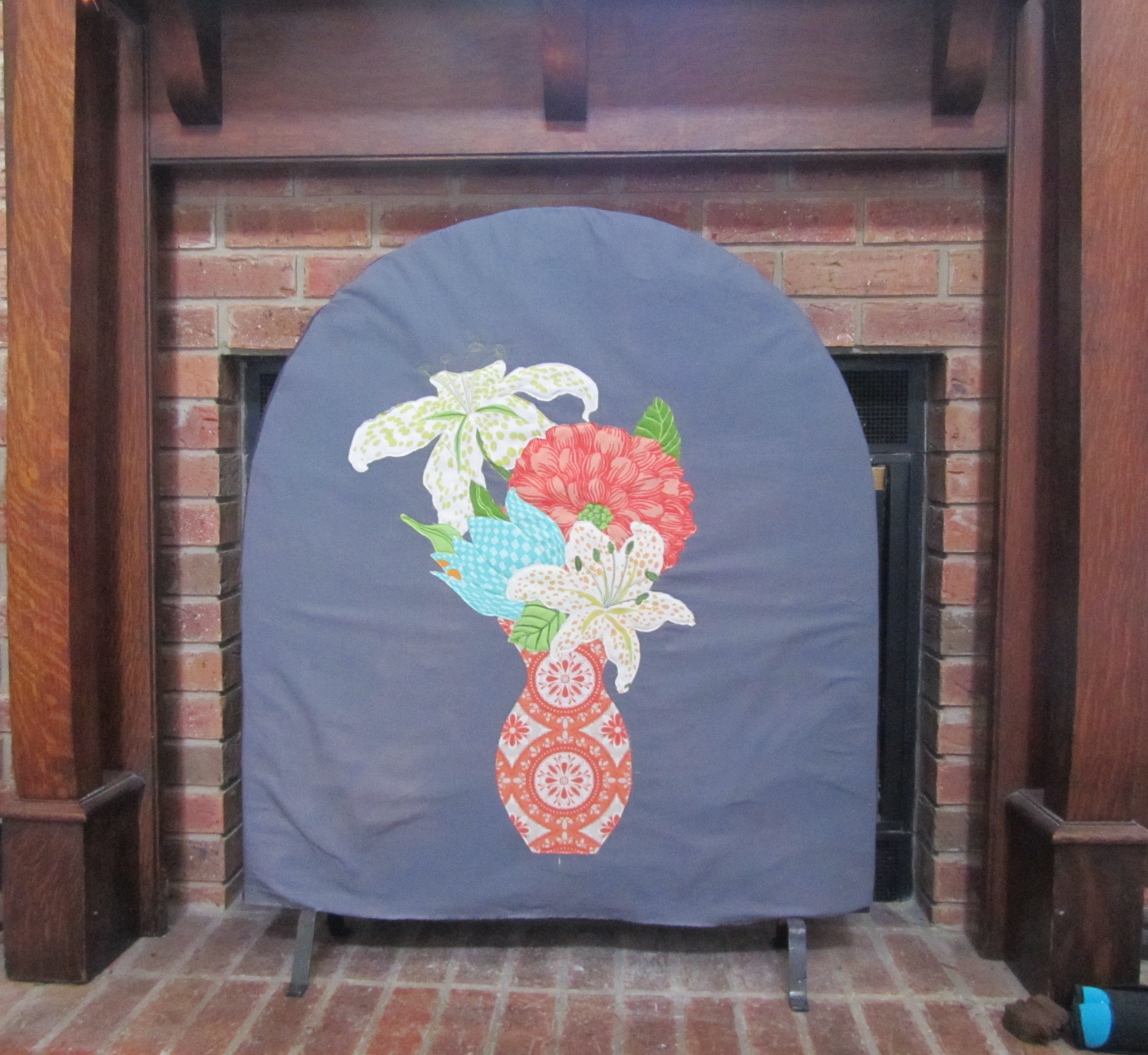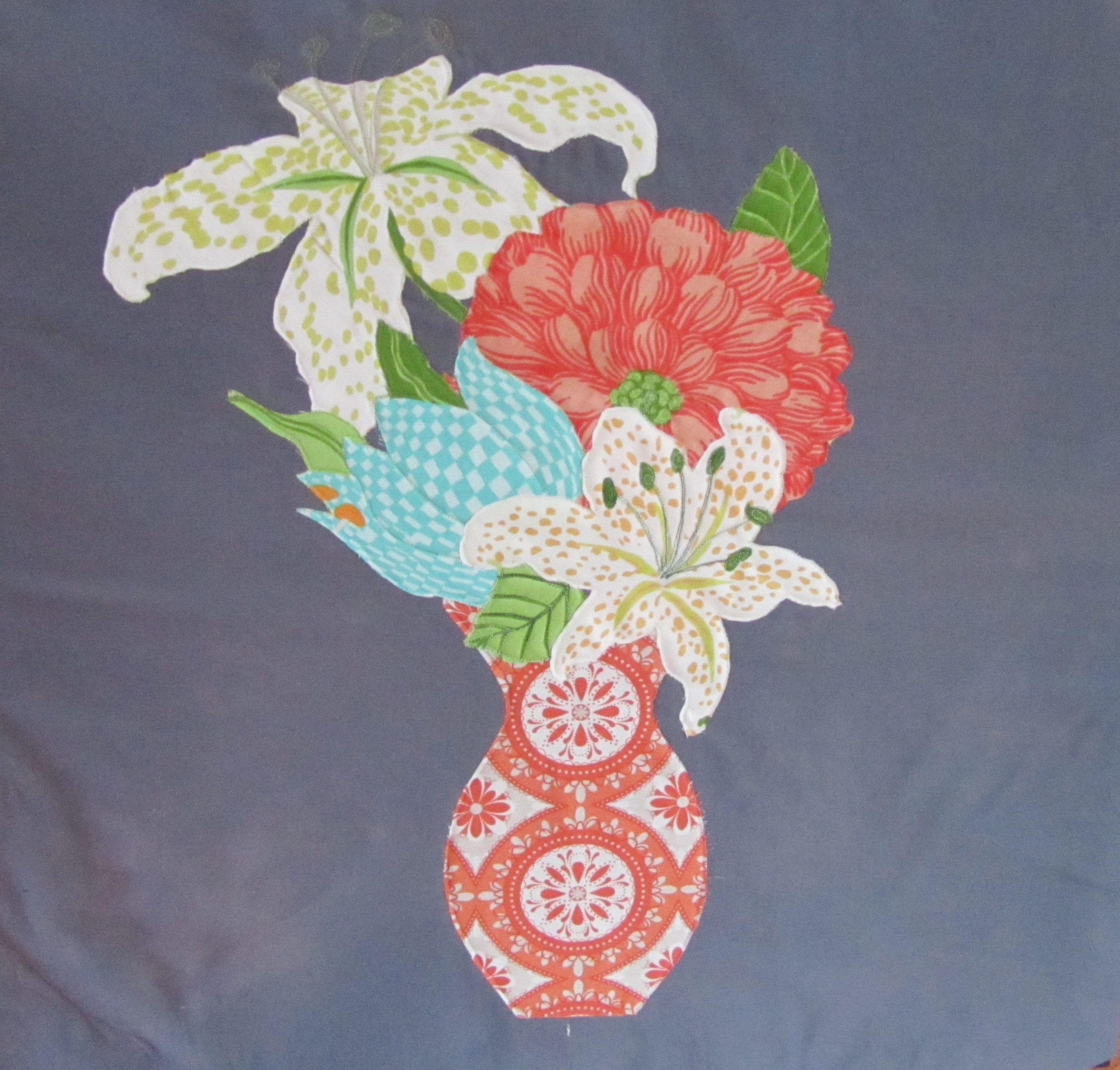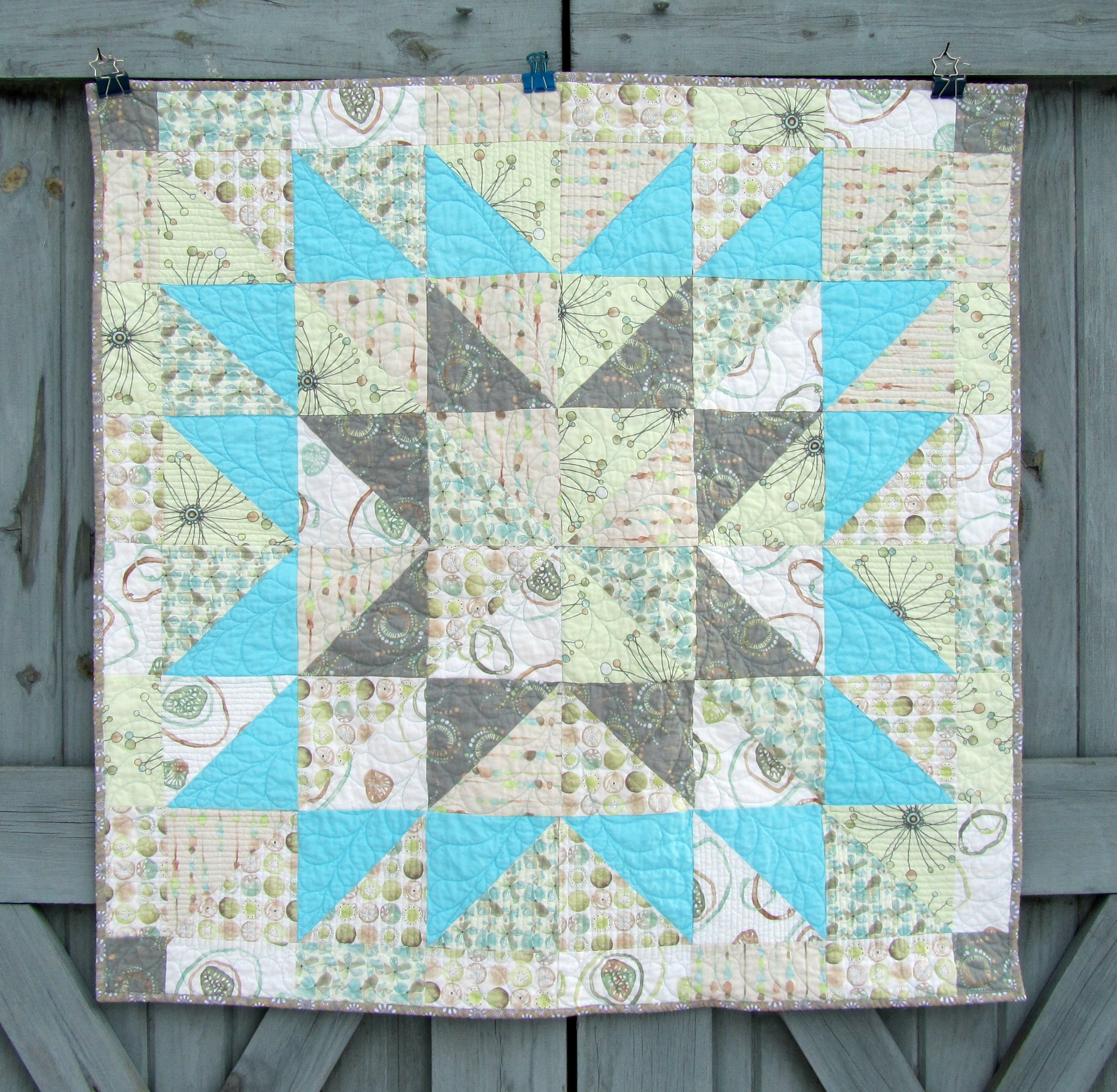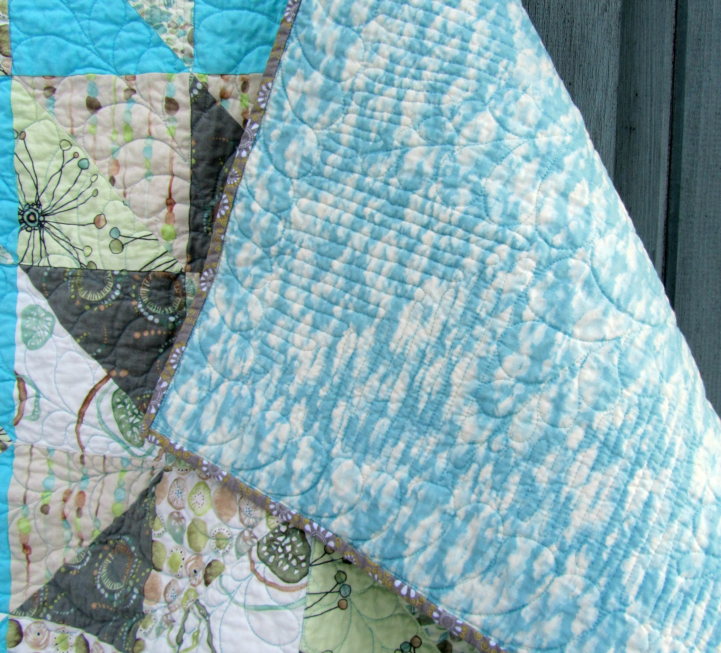 I backed this with an aqua cloud print. A very successful little quilt. 38″ square.
