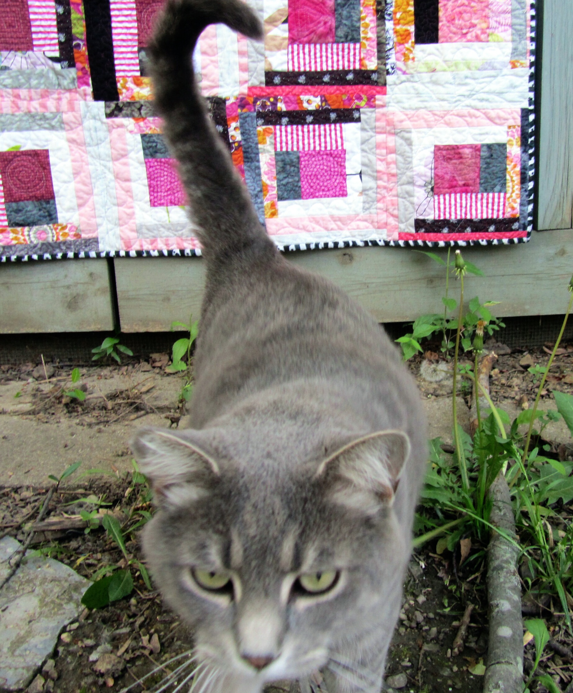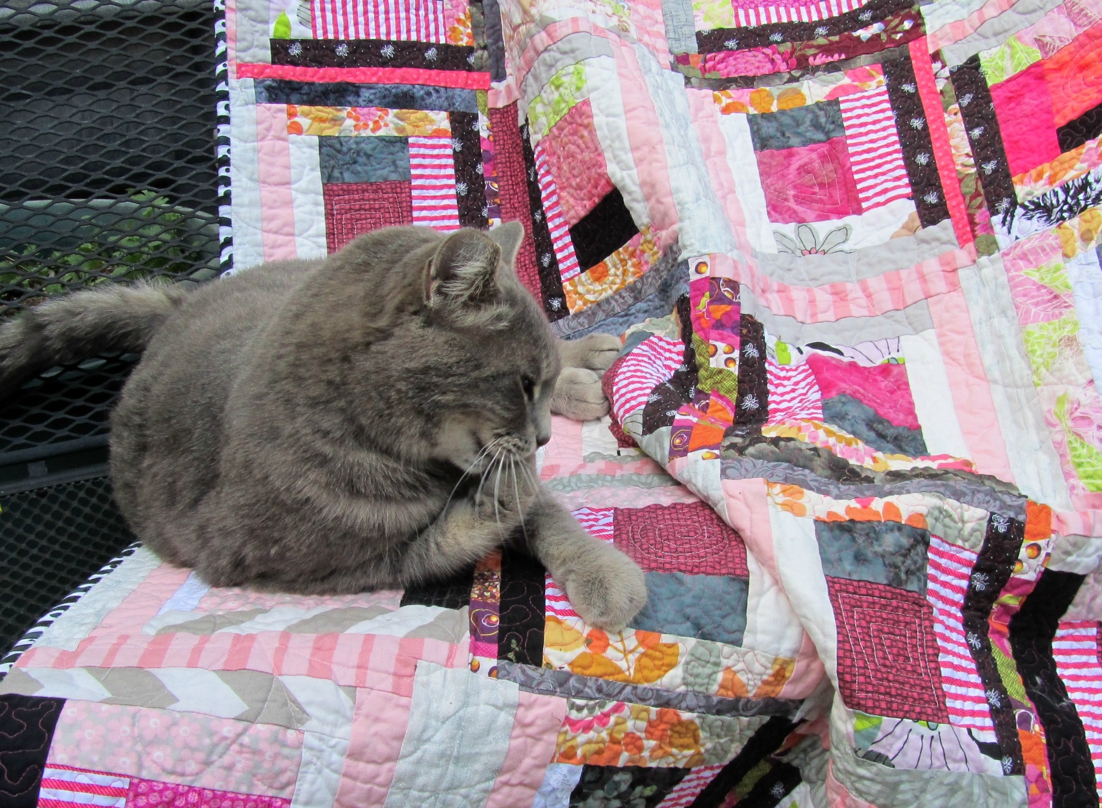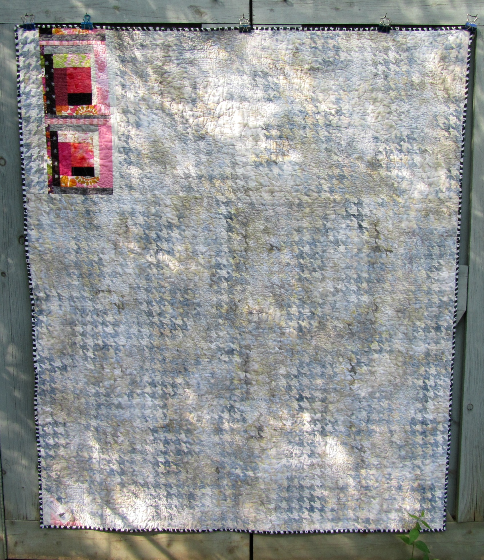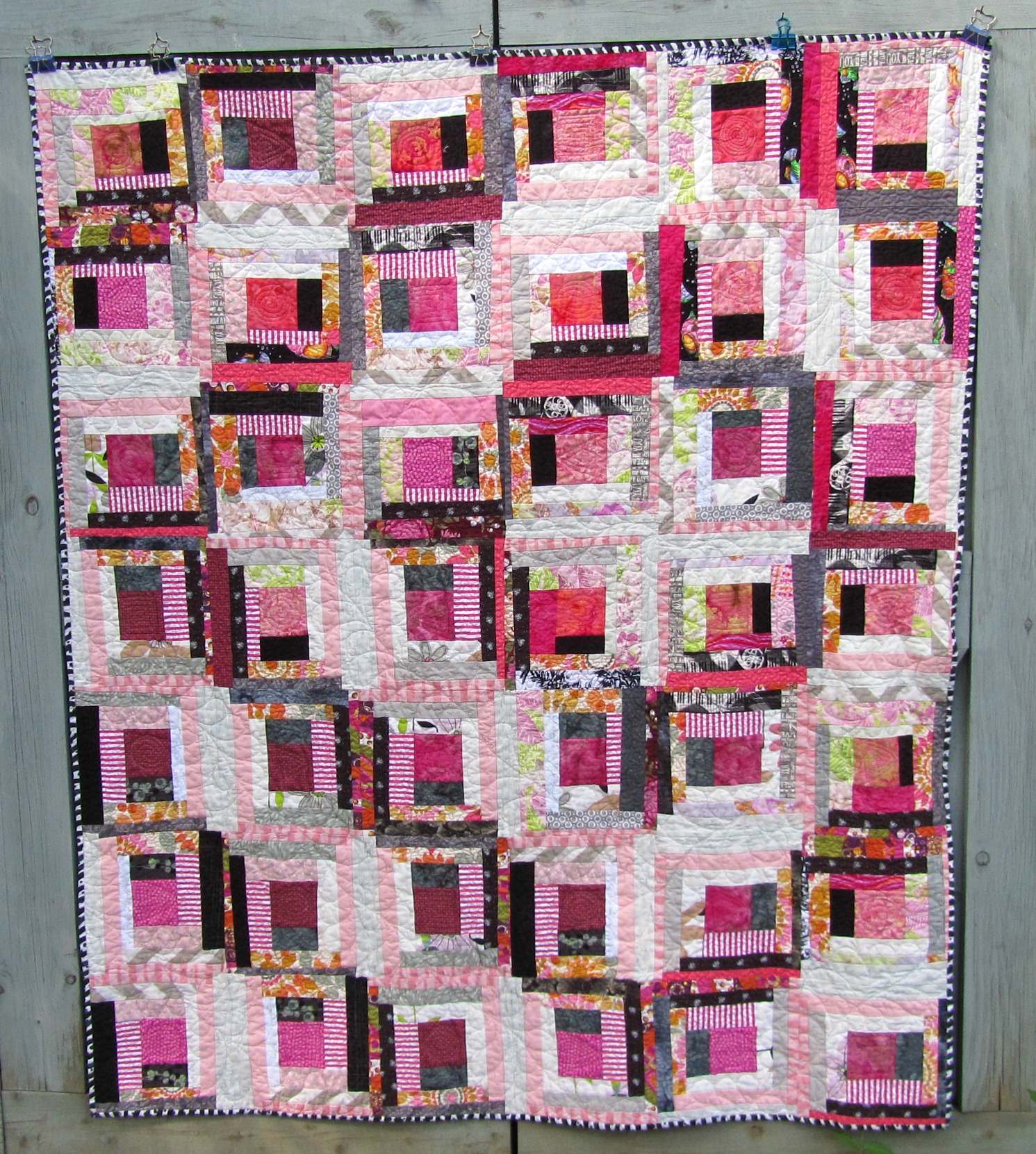 3. Assemble and quilt the pink and gray scrappy log cabin quilt. Yes! See it here.