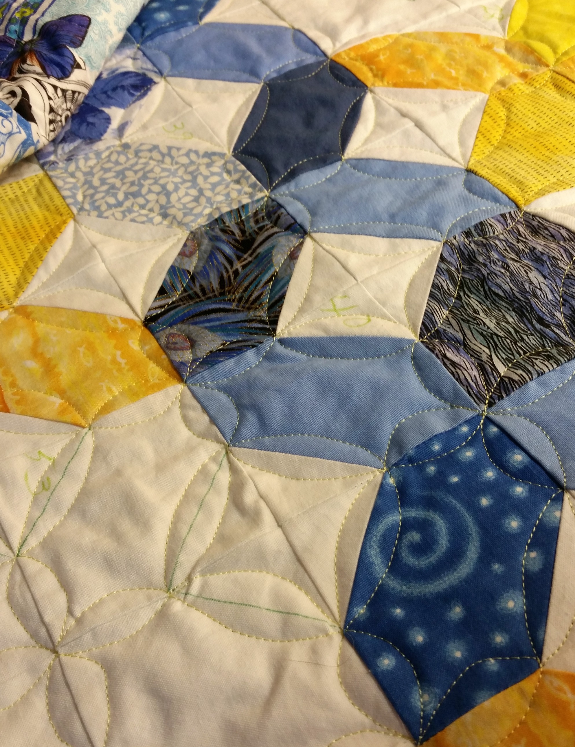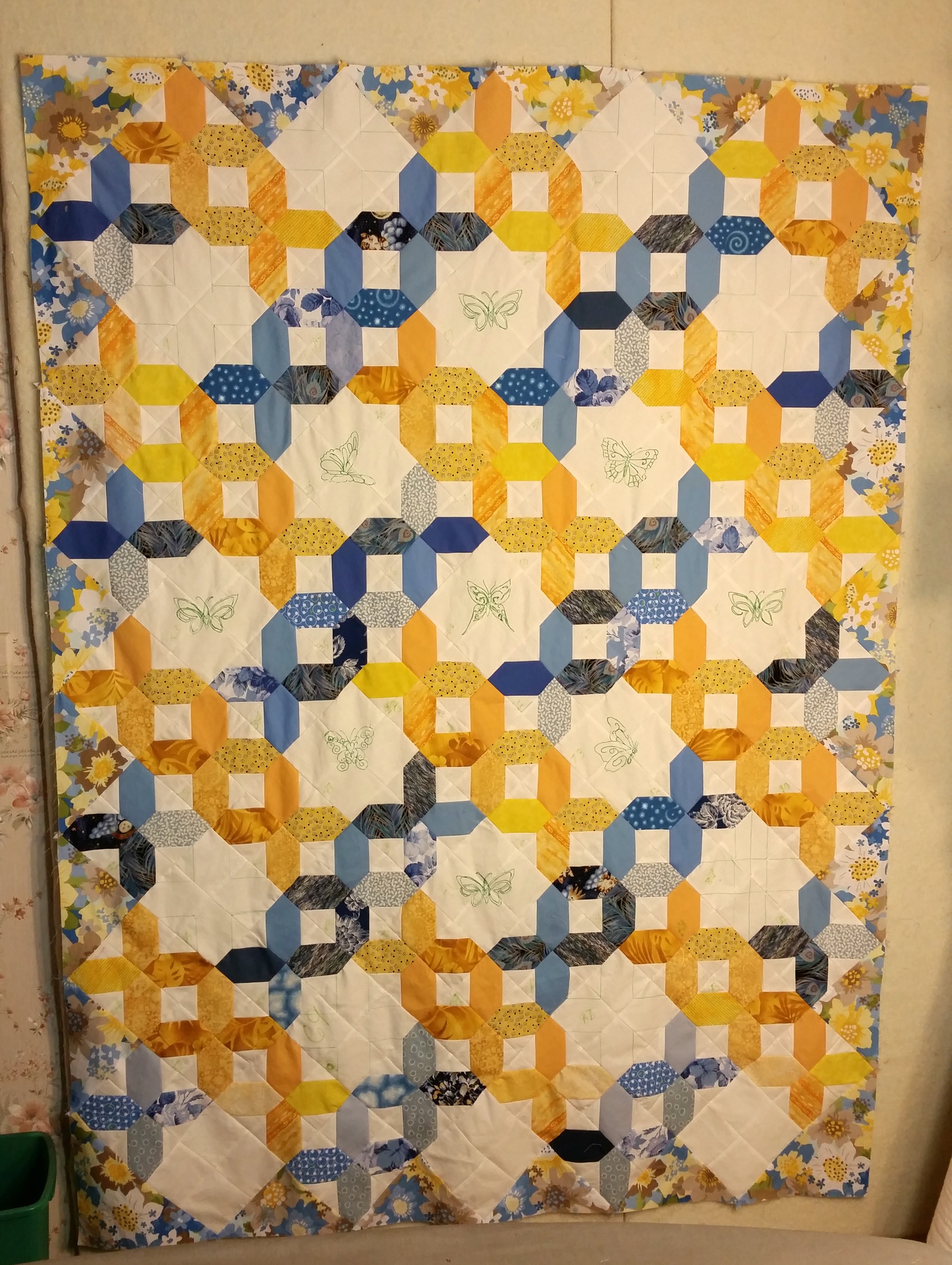 4. Assemble quilt blue and gold leaders and enders units into a top. Yes! And I’m quilting it!