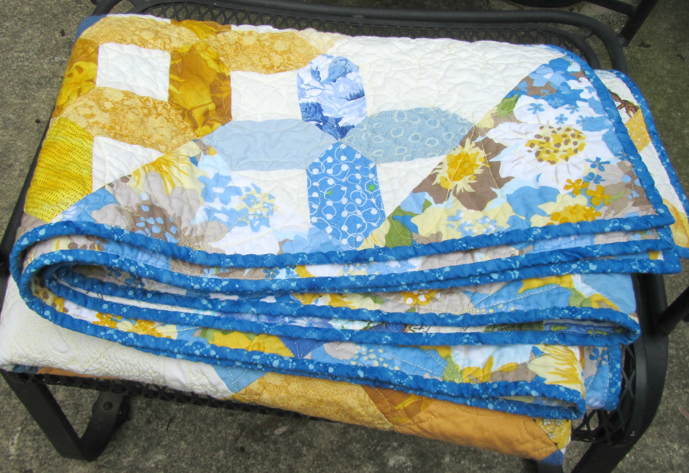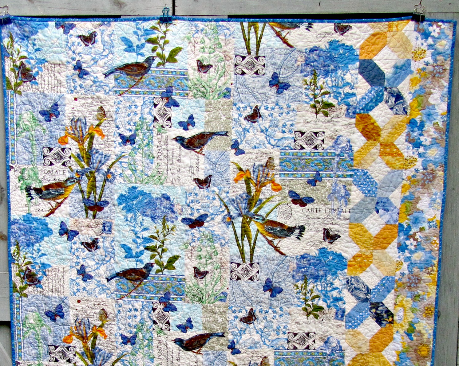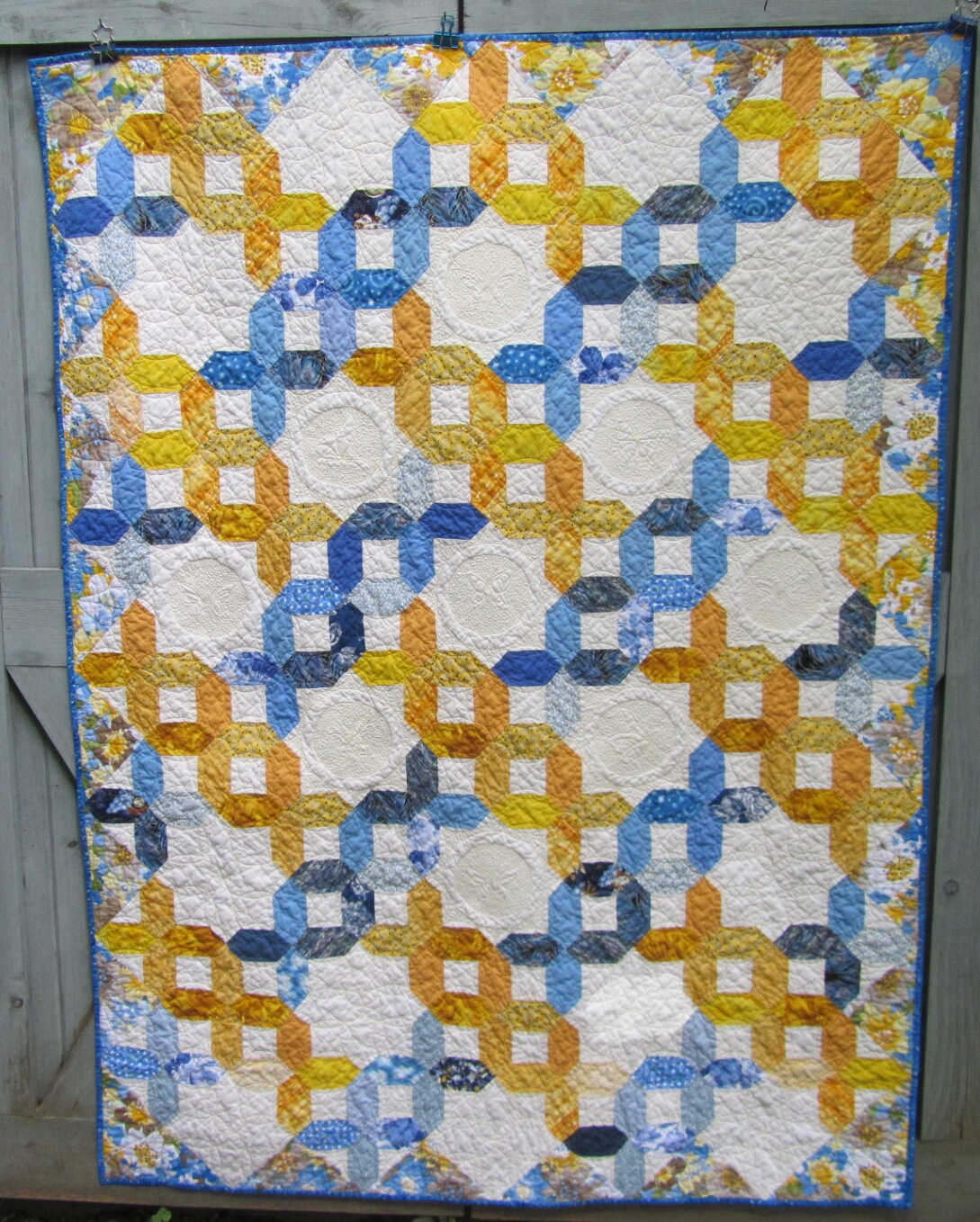 I really love this quilt Valerie! Those white circles with the butterflies in the middle look fantastic I love the texture it creates! And you can never go wrong with blue and yellow in my book 🙂