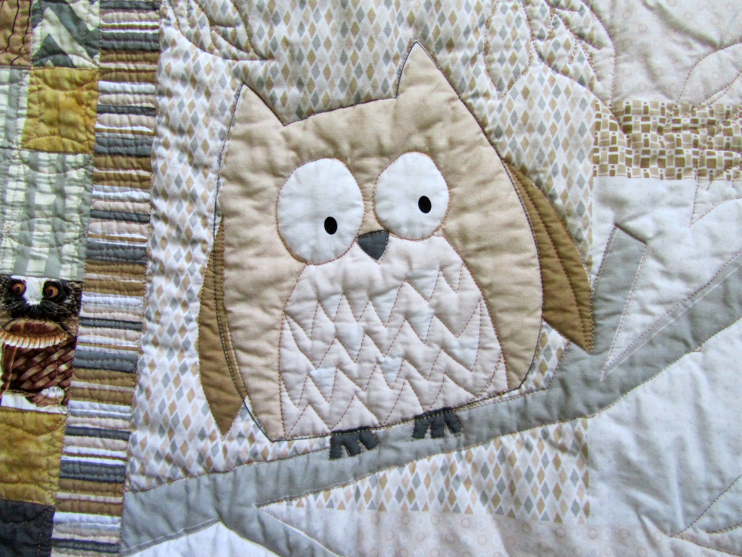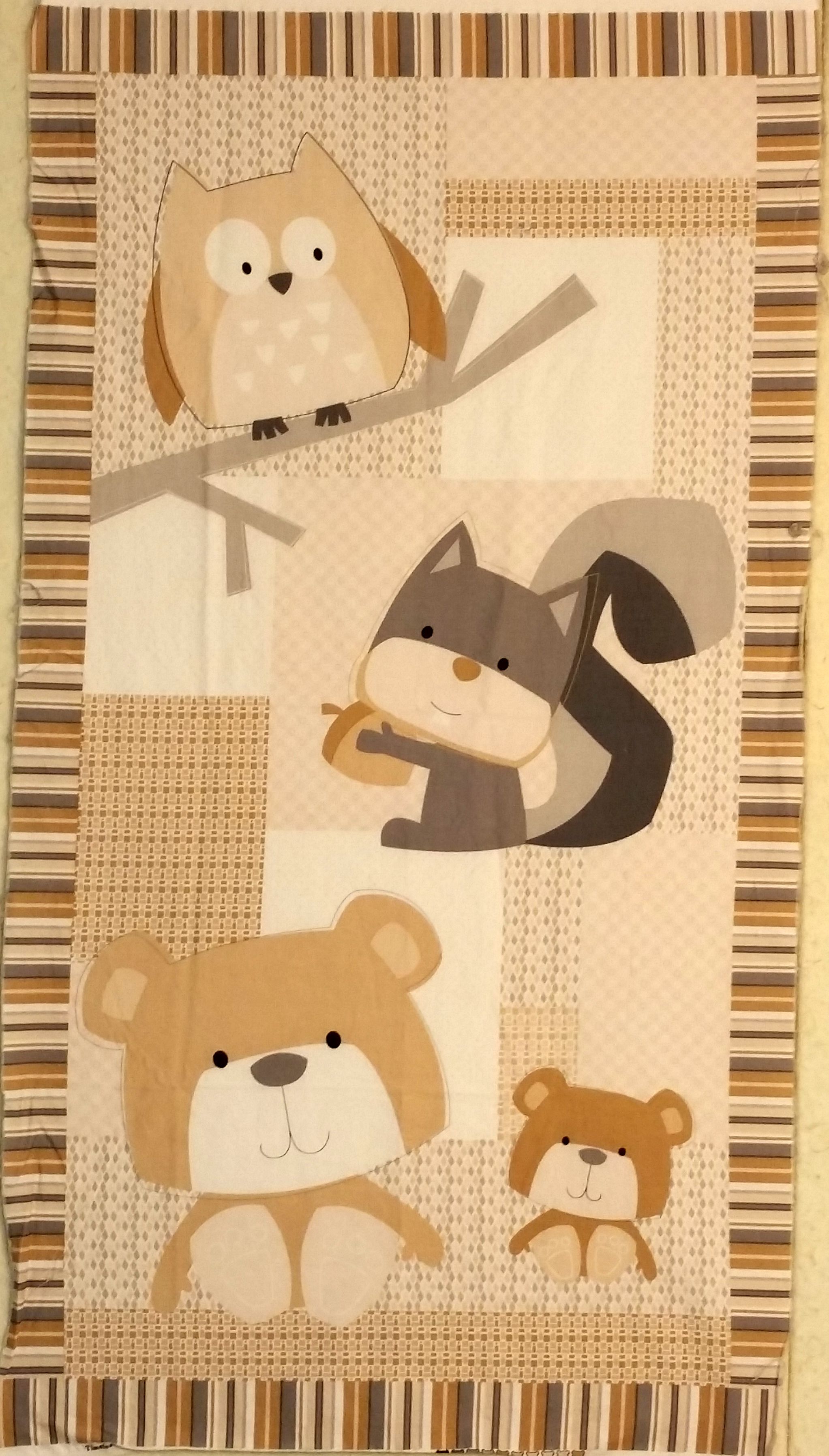 IMG_2412This week I made a quick baby quilt from a panel and it turned out awfully sweet.  There is no applique on this, it’s all printed.