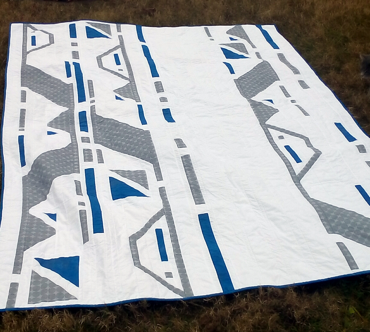 Yesterday I finished the twin-sized Droid quilt from The Stitch’s Droid Quilt Along. It used nine and a half yards, but I did need to buy an extra half yard of the white Kona background. This concludes my Christmas sewing, just in time. I experimented with using my tablet for these photos, not too impressed.