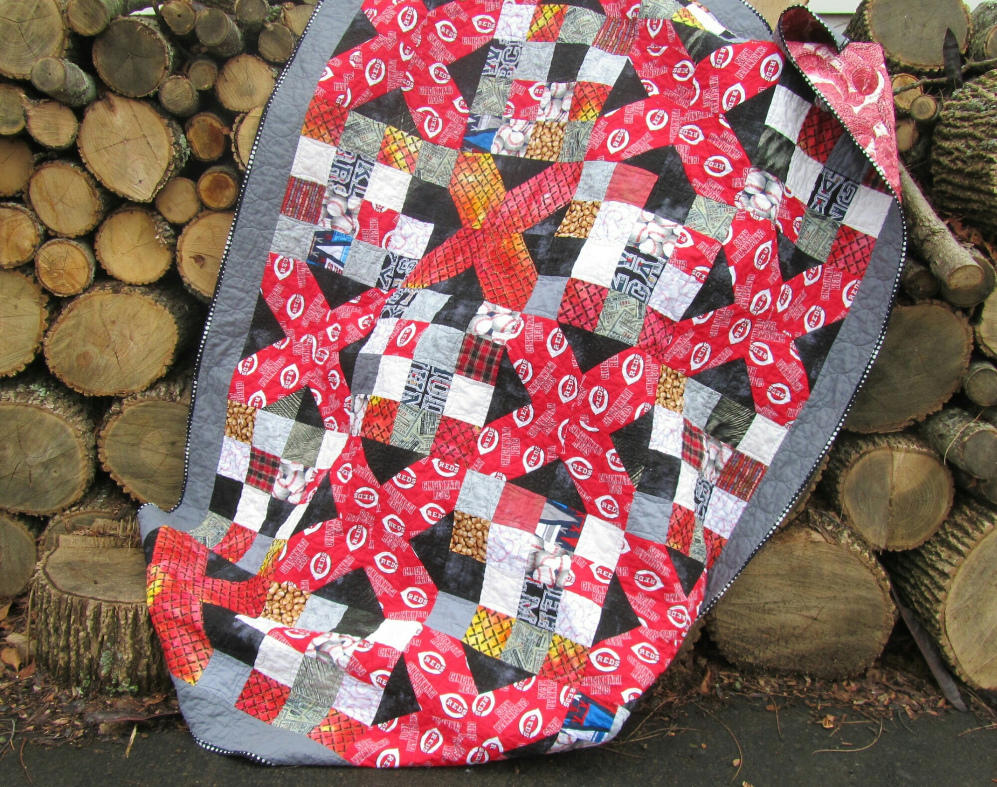 This quilt will stay with me. I was checking out bedding in case some of DS’s friends came home with him, and discovered that I didn’t have a spare twin quilt. Now I do.