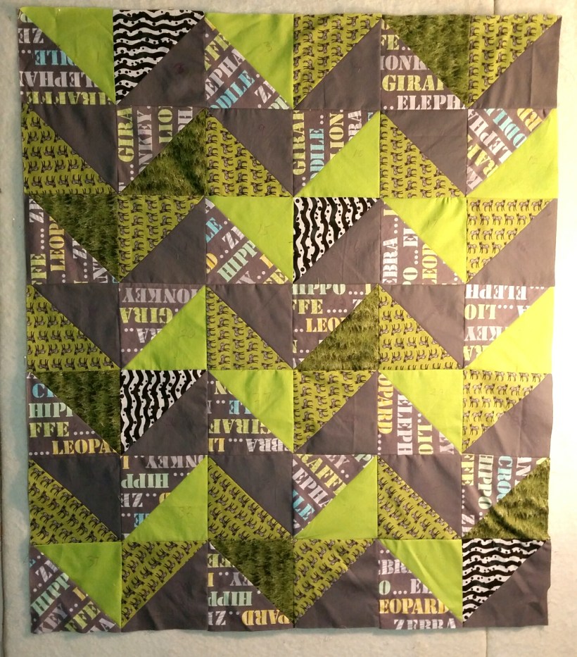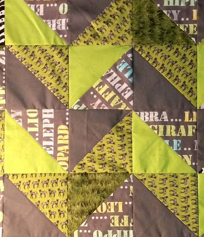 Later, I was antsy and looking for some mindless sewing, so I pulled out these zebra blocks . I may have made too many, okay, double, the number of blocks I needed for my last zebra baby quilt. The green is prettier than this, I was losing my light.