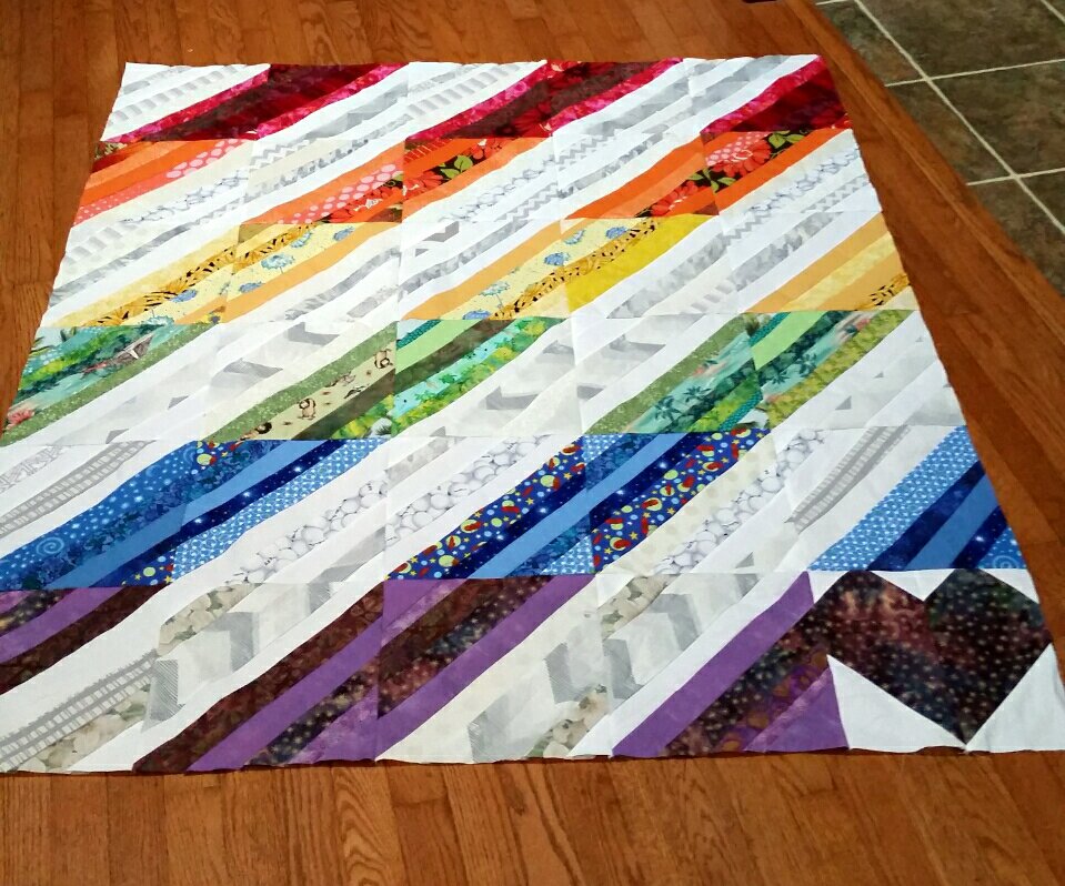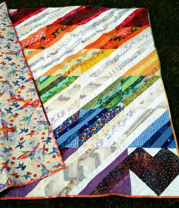I’m happy to show you this finished quilt! Layer Cake Explosion was the Twilter! quilt-along. The design is by Angela Gross, and you can find it on Craftsy.