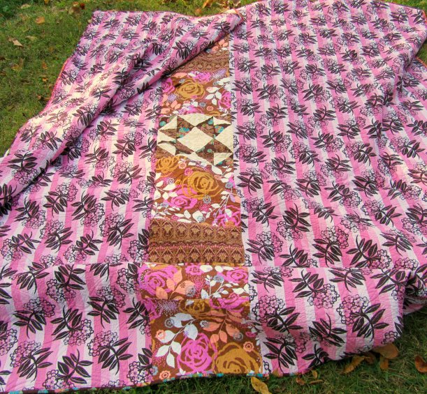 Speaking of the back, somehow this star landed perfectly in the center. Notice the quilting from the block on the other side. Could never do that again!