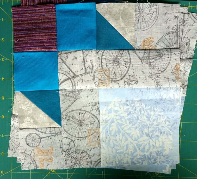 After I finished that top (backing is in the other package), I got out the Pacific Stars Mystery Quilt by Charlotte Scott (on Carol’s Quilts blog).  I’ve now completed all the blocks and am assembling the top.  It was mysterious until the end,  and I like it!