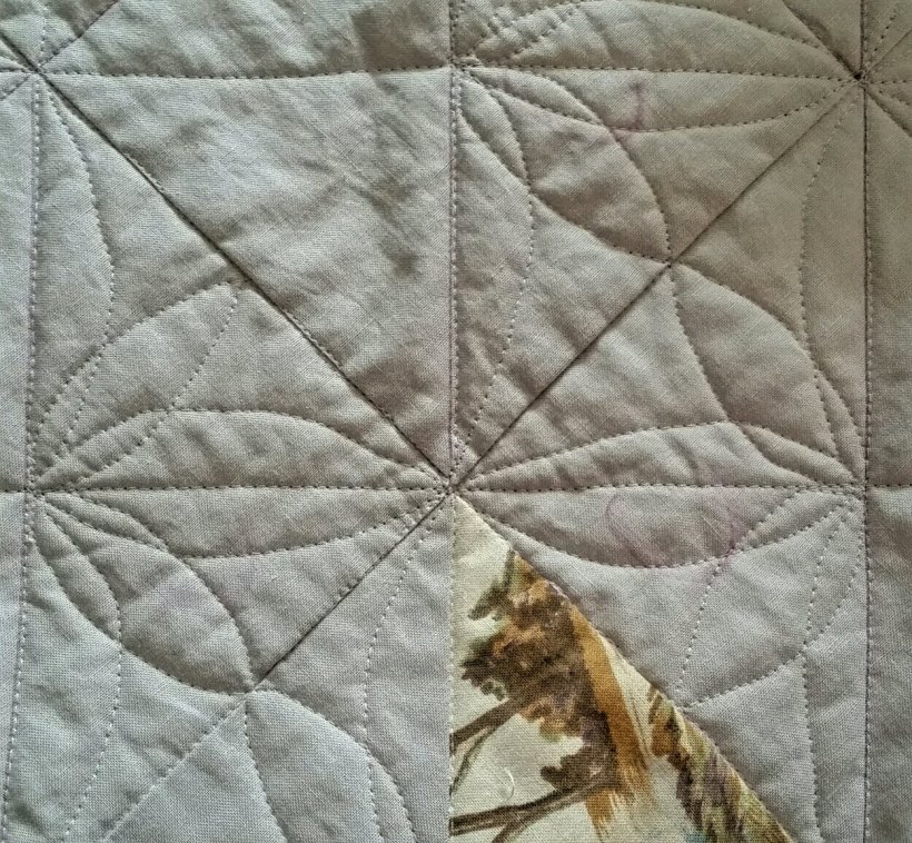 There are lots of straight lines from the walking foot, and then I added this pattern to fill in the negative space.  It’s from Shape by Shape by Angela Walters.