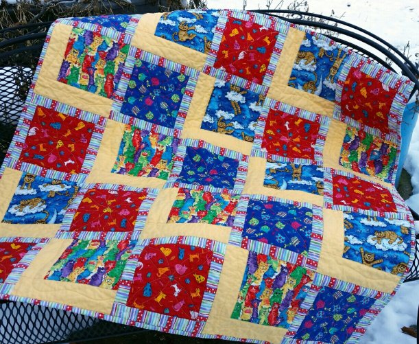 Many of you have shown photos of cleaning up your spaces to get a fresh start for the year, including cutting up the scraps. I did, too, and friends seemed impressed, but what you have to know is that my scrap bin is tiny, just about 6″ x 8″. It fits on my small cutting table, and fills up fast, so I have to attend to it before overflows and falls over (with or without help from cats). It’s so small that emptying it is never too daunting, but a good procrastination task when I don’t want to start something new. I don’t cut scraps after every project, but every three or four, or whenever it’s very full. I like to leave the scraps from a quilt to marinate a bit until it is completely quilted and bound, just in case I need to fix or change something or use them in a label.