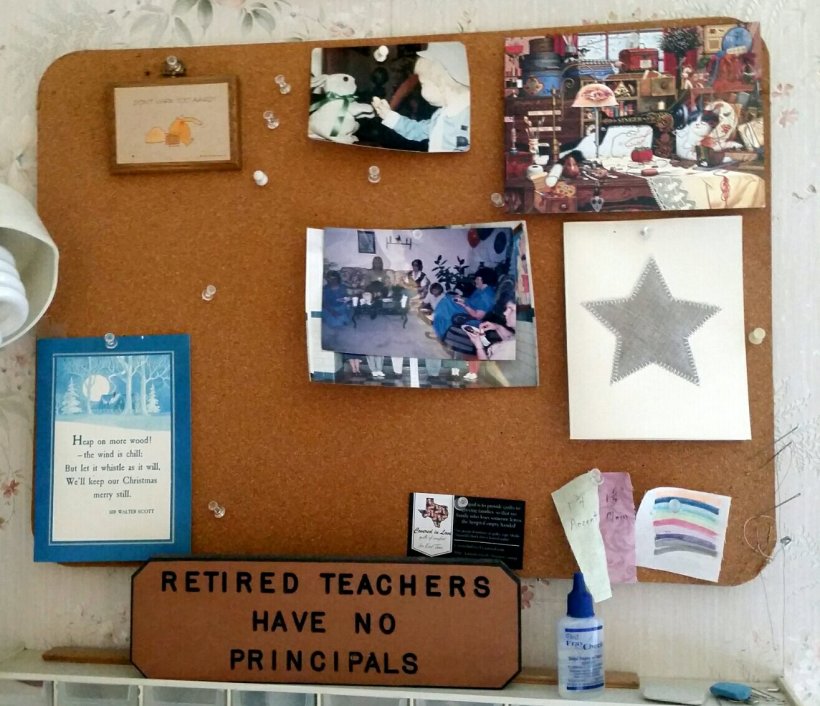 This bulletin board was a complete wreck, several layers deep in expired coupons, old project directions, etc. Now it’s ready to tack up something I need currently.