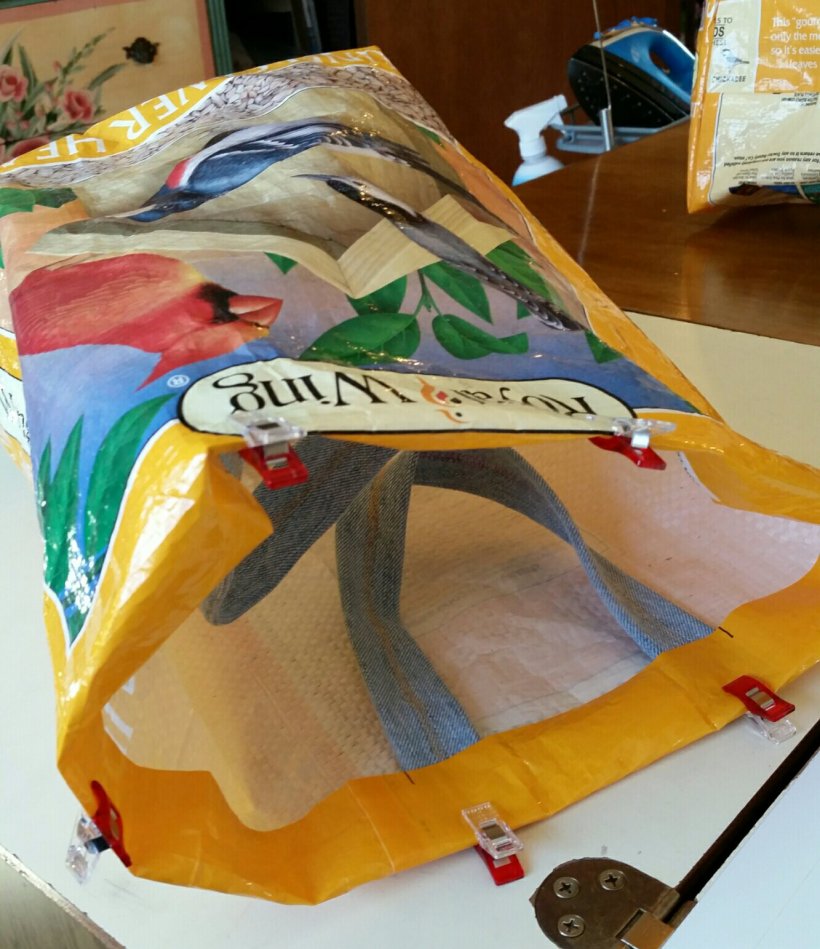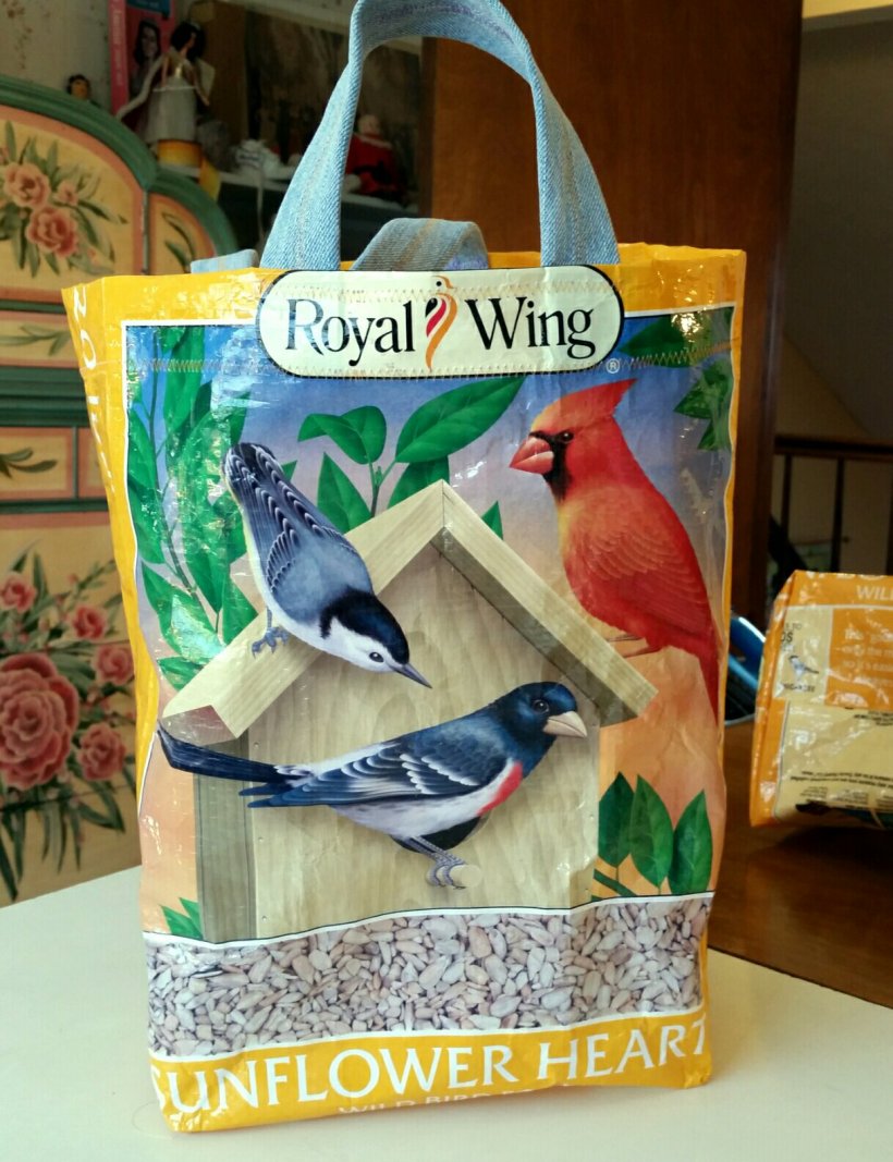 First I finished the six grocery bags made from birdseed bags.