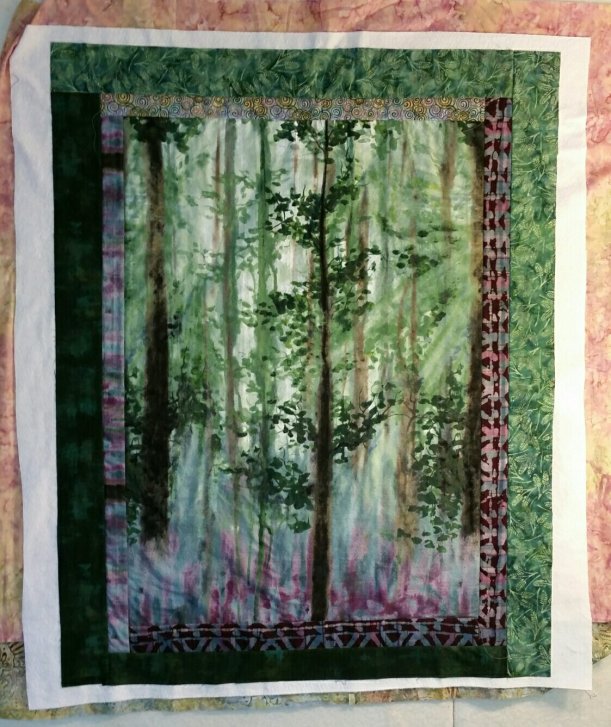 I debated whether to bind it in green or purple, so I put it to the #Twilters. Green won, but I went with Darla’s idea of a purple binding with a green (faux) flange. Thank you!