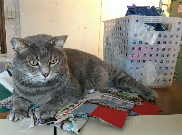 Some designers give a new direction every week. Charlotte gives us the cutting directions in November, then, starting in January, we get a new clue every month about which squares and triangles to sew together. It takes longer, but can be easier to manage.