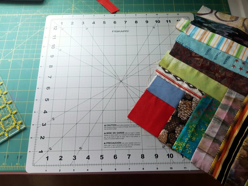On this snowy day today I finished a dozen donation string blocks for Kat’s Covered in Love.