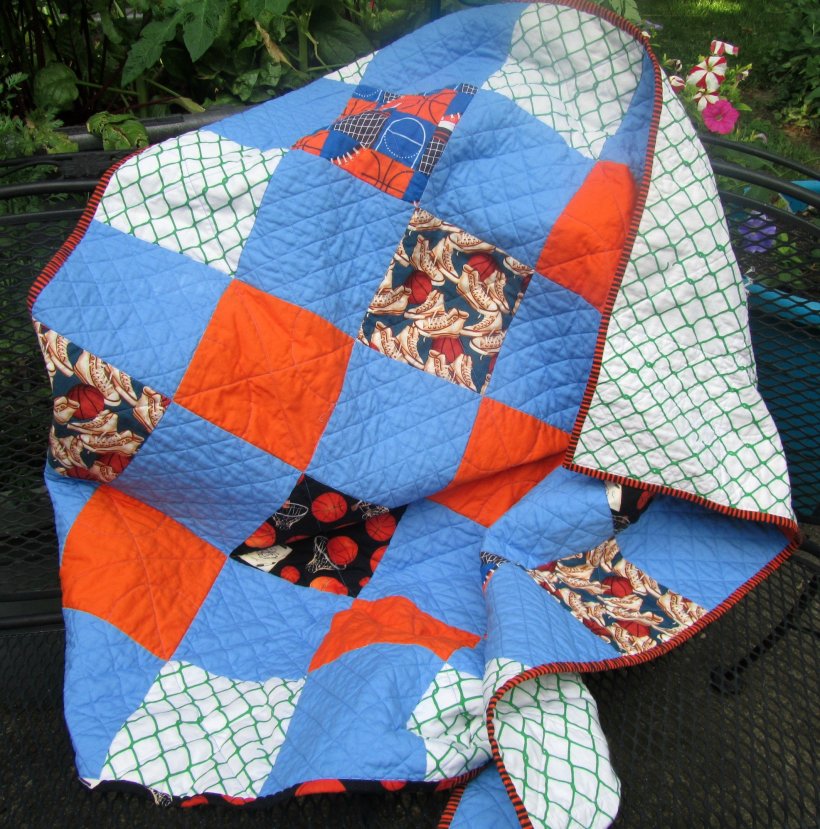 No new fabric, and the Sports Baby Quilt #3 used 3.5 yards of fabric.