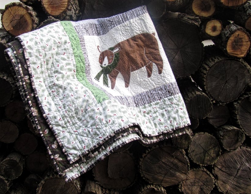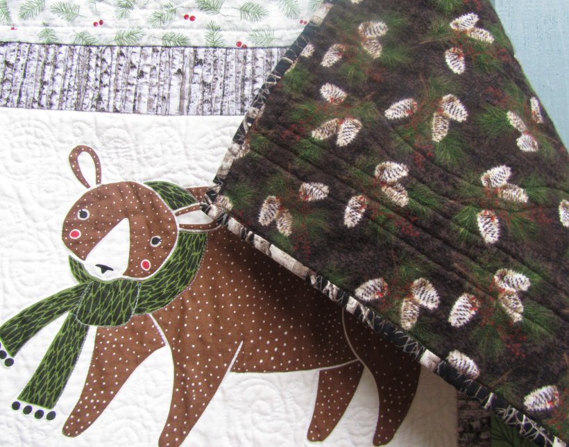 Here it is! All quilted and cosy with a flannel backing. This ended up 50″ x 72″.