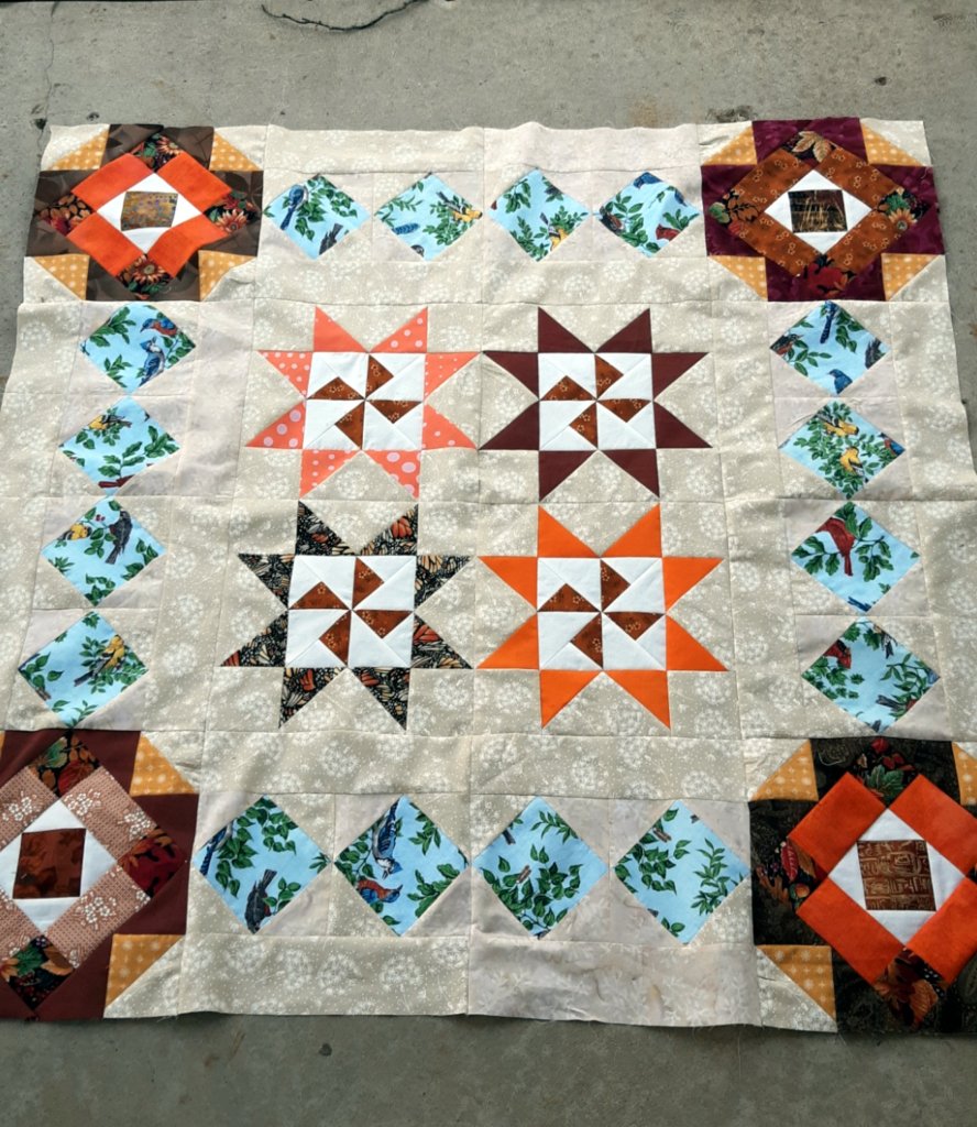 No new fabric this week! And I used 2.75 yards on the very bright sloth quilt.