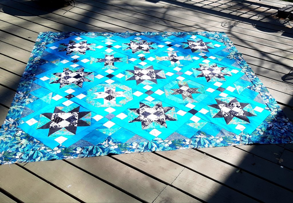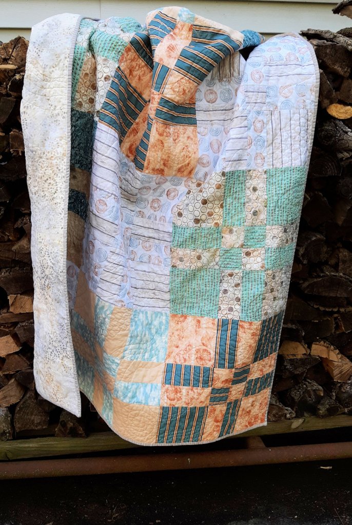 This year’s beach quilt is…different. I wanted to do something different from the framed squares I often do.
