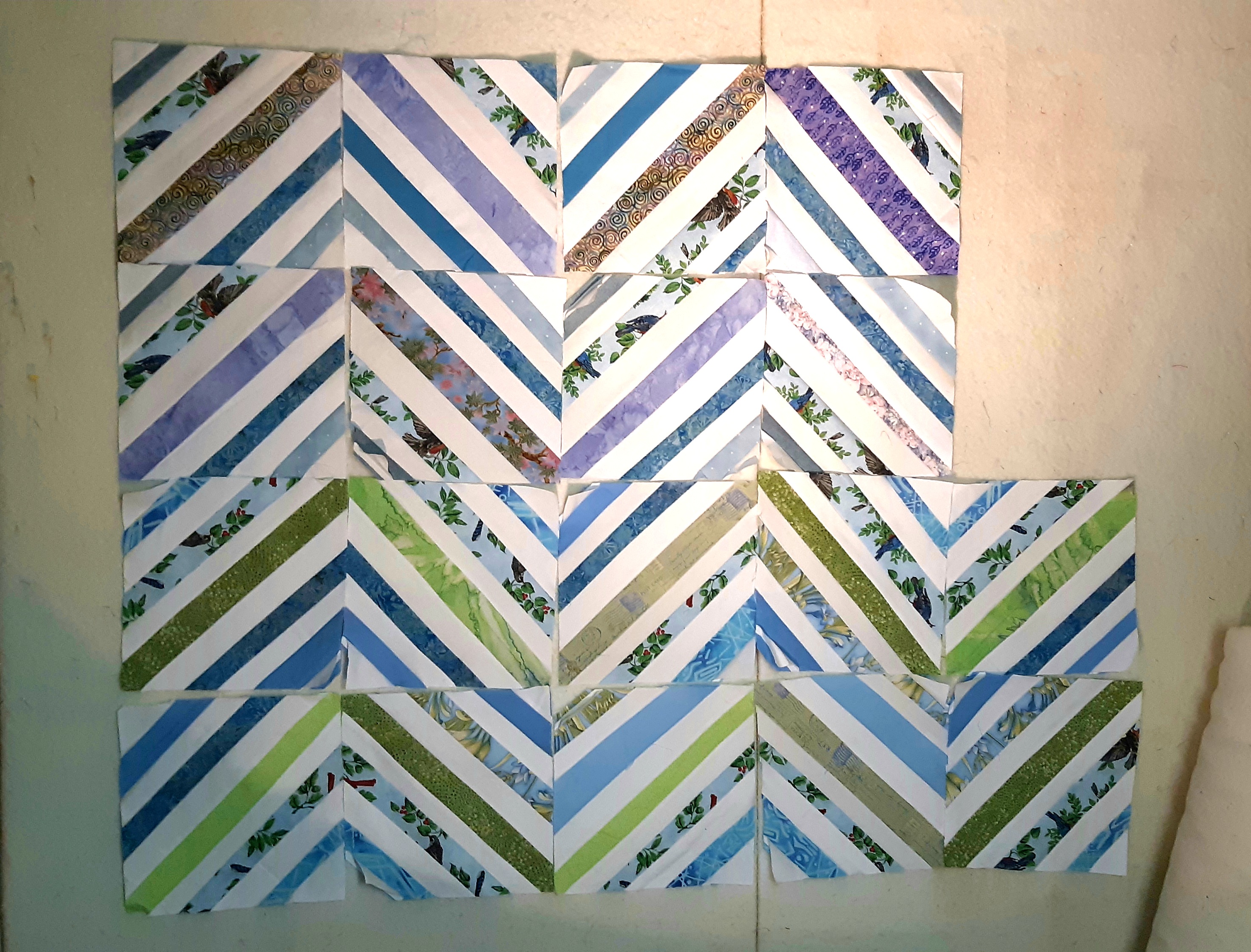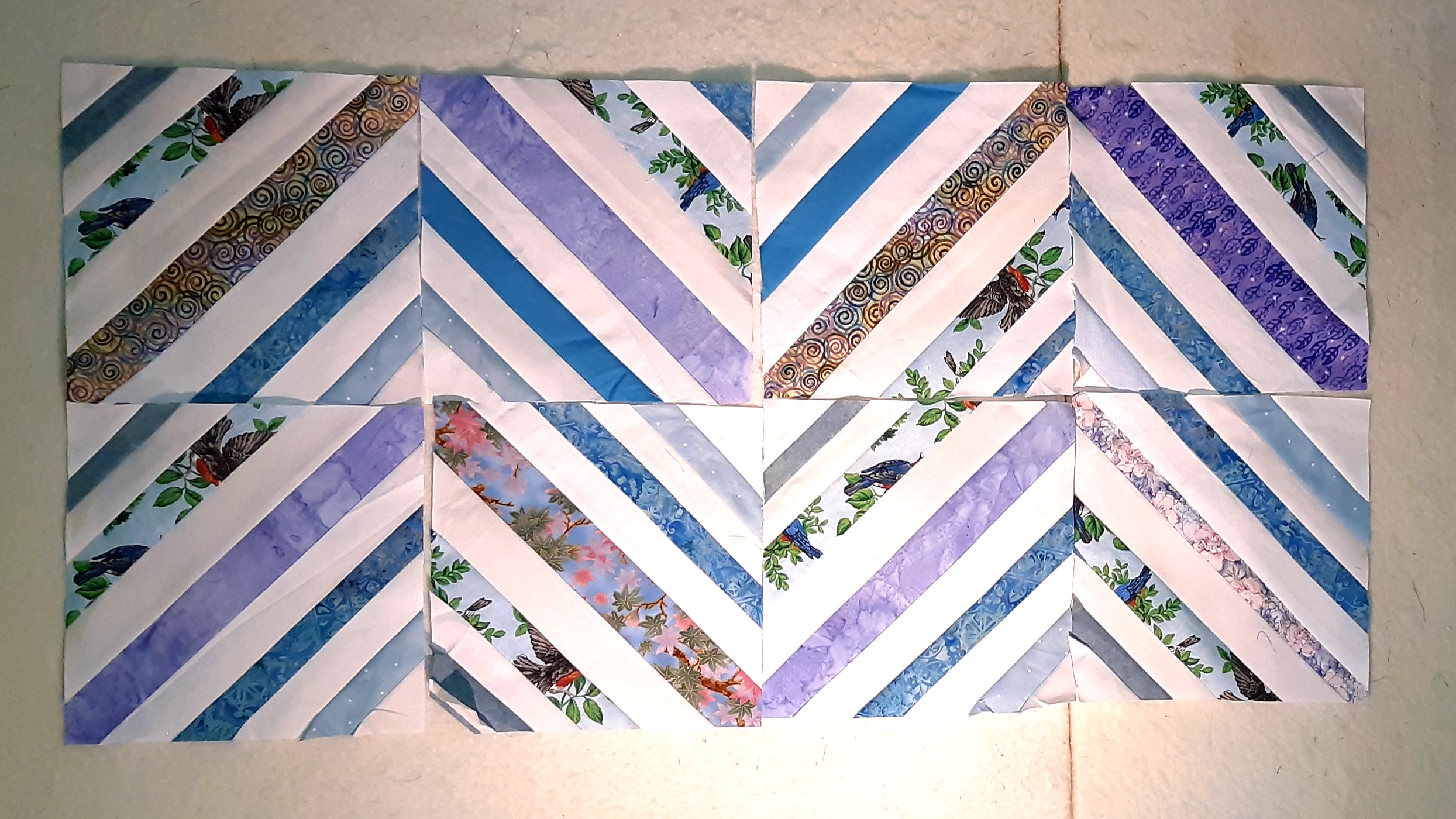 I quilted it with wavy lines in pale lavender poly thread. I started out to do feathers in a slightly darker variegated thread but it looked terrible, so out it came.