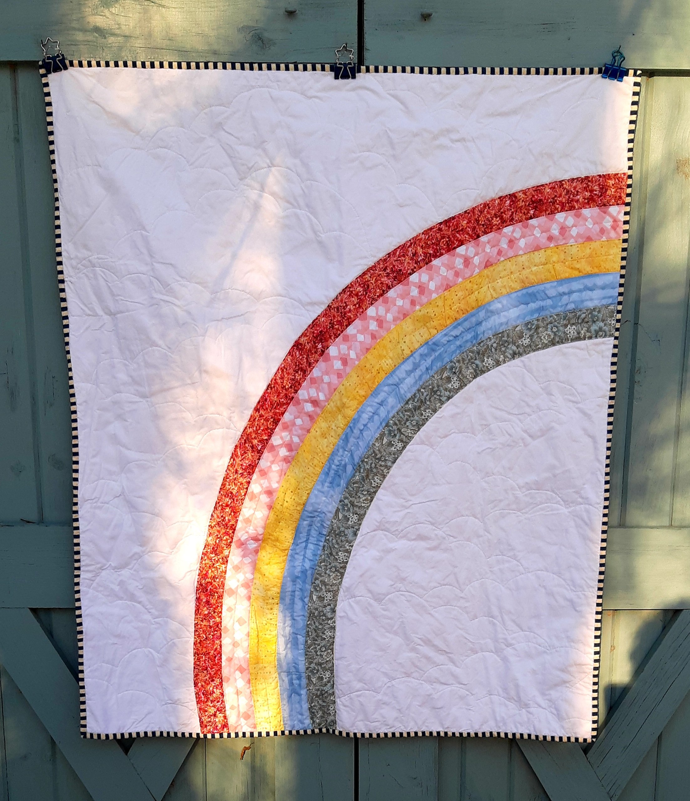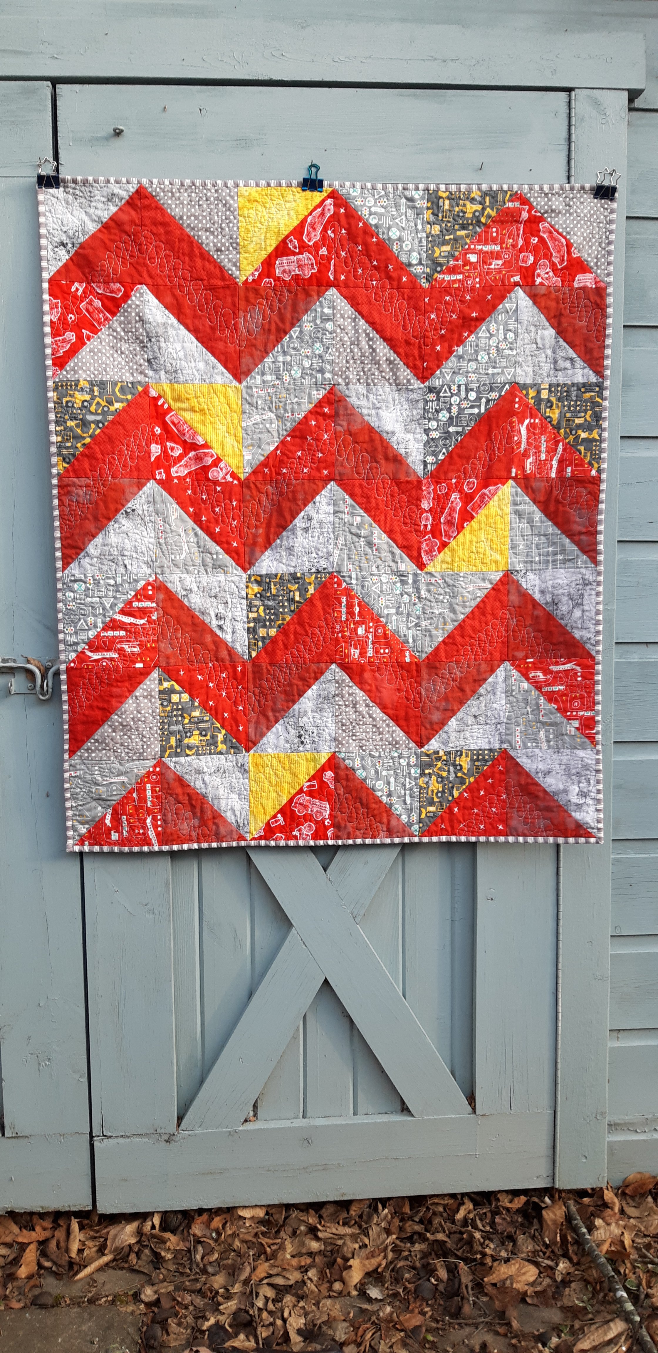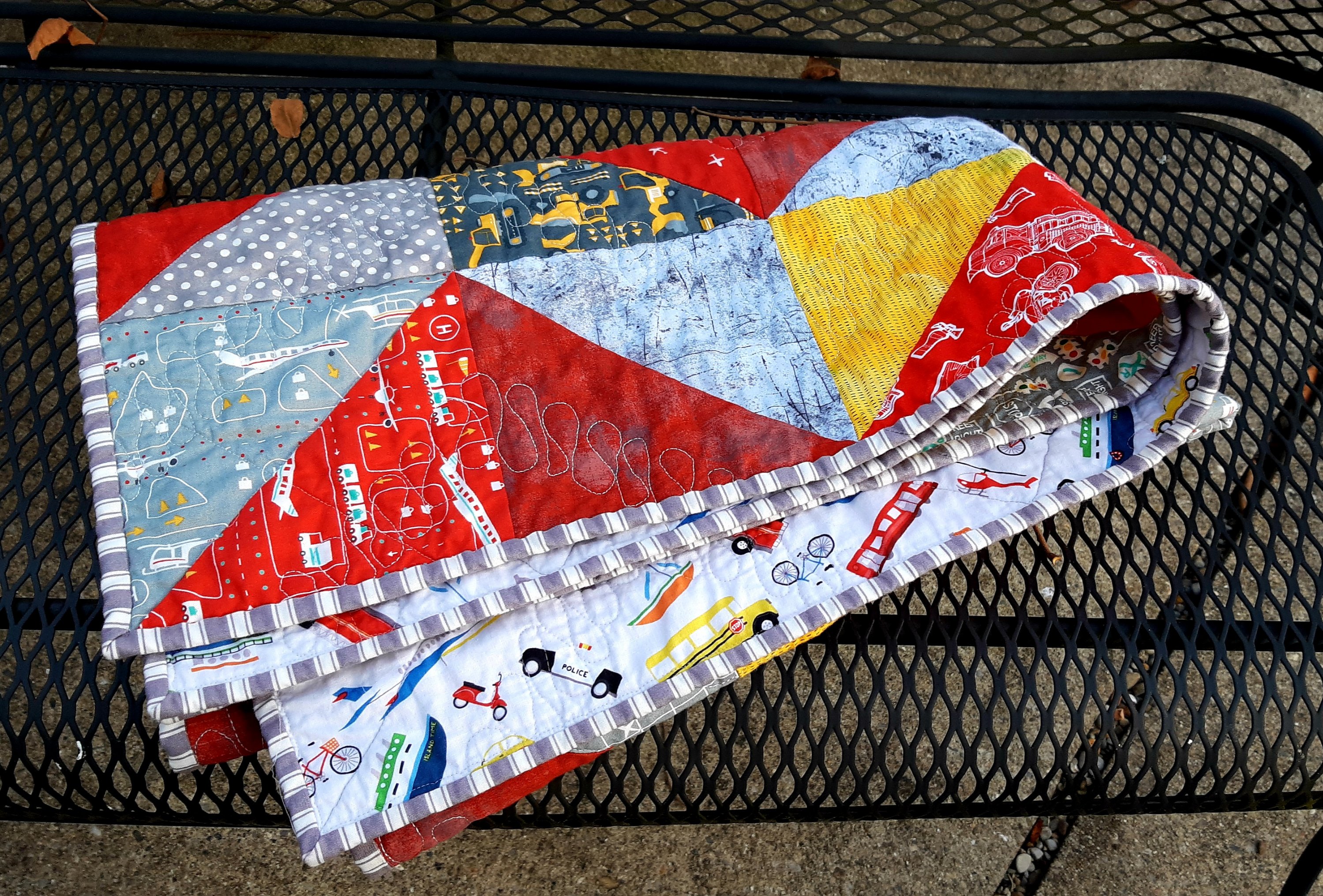 I finished this bright baby quilt. It’s made completely from scraps from the twin sized commission quilt I did in the fall. I think I have enough to make another by adding just a little more fabric.