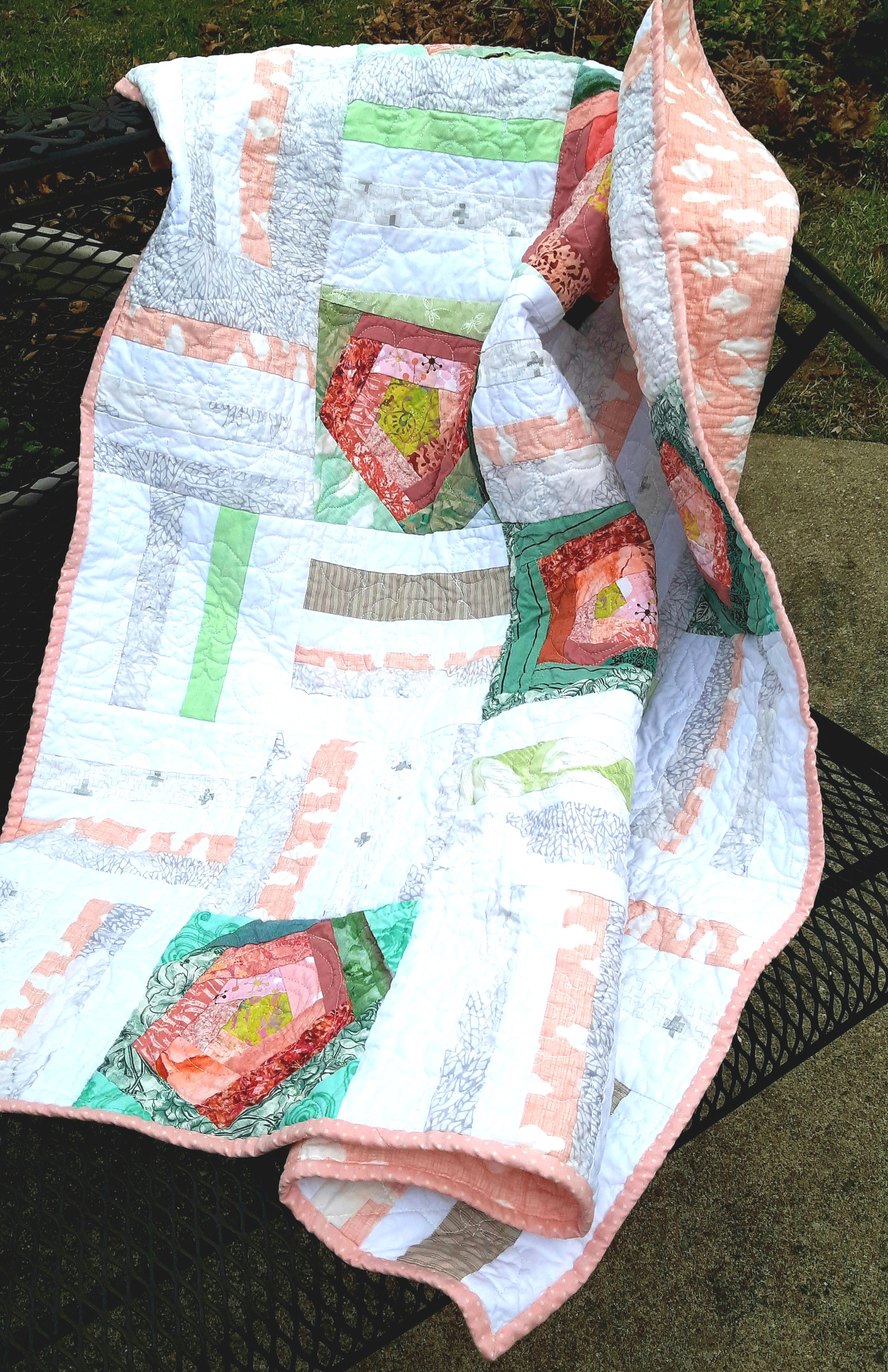 This quilt was lots of fun, and I love the way it turned out. The blocks are 7″, and the whole quilt measures 34″ x 41″.