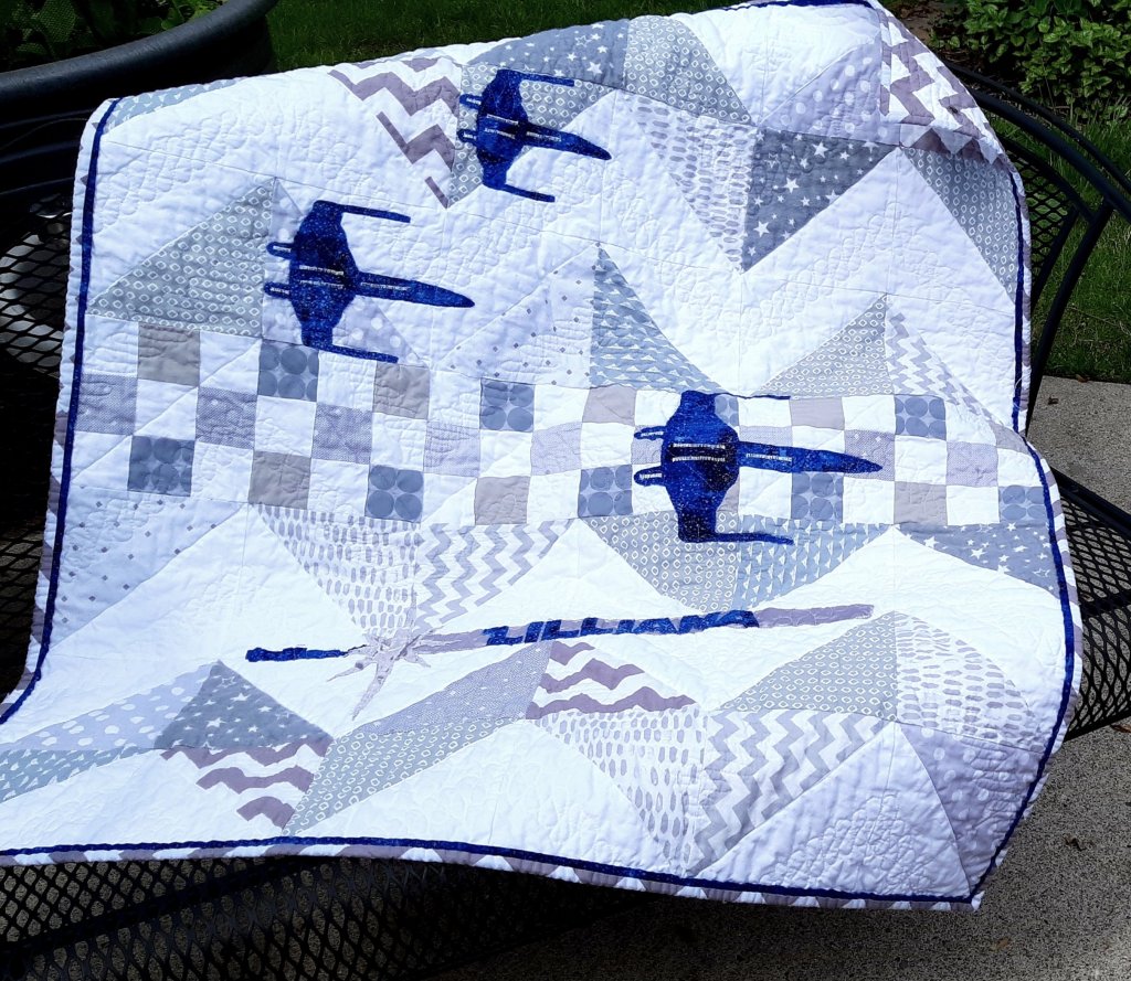Hello! No new fabric this week, and I sent off this commissioned quilt. (Its number fourteen, if you’re keeping track.)
