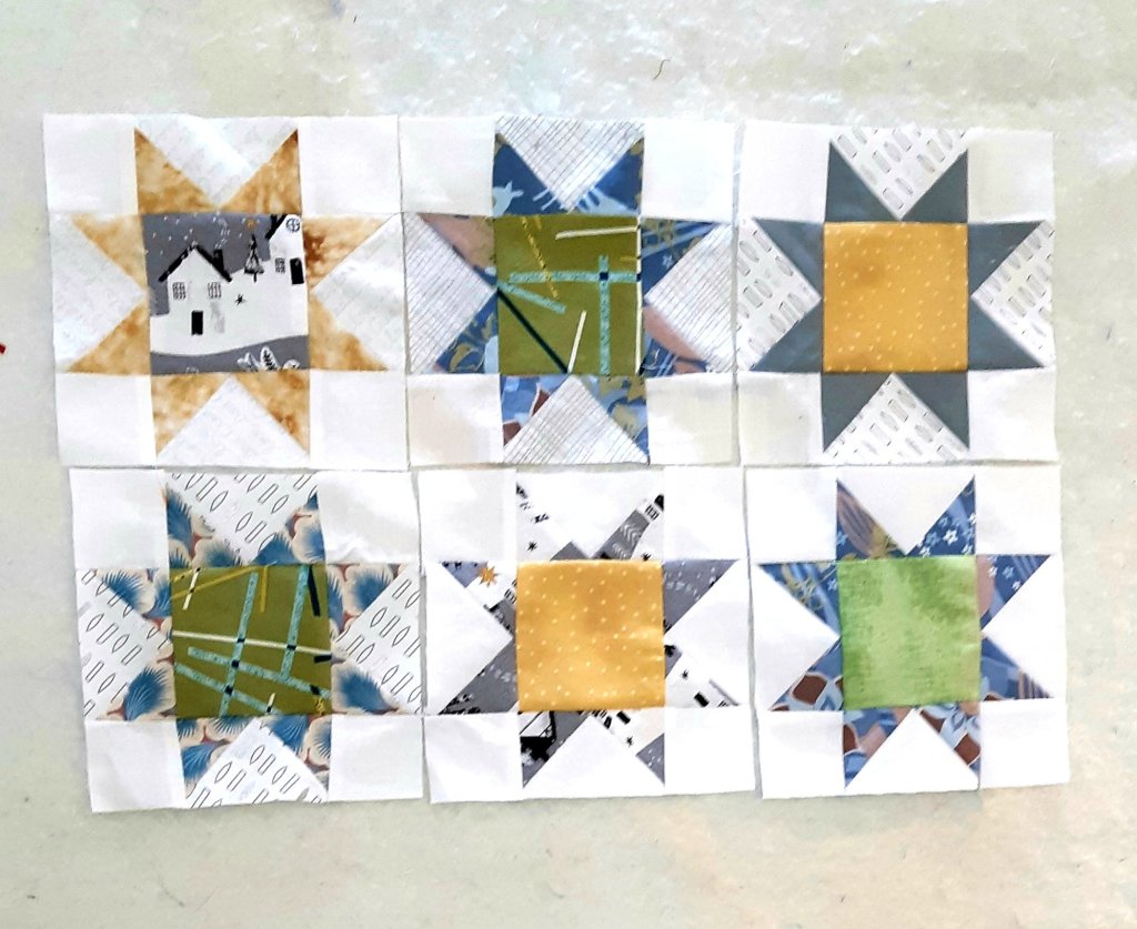 Clue #2 completed for Pinwheel Surprise mystery quilt. (Not shown are 24 HST squares.)