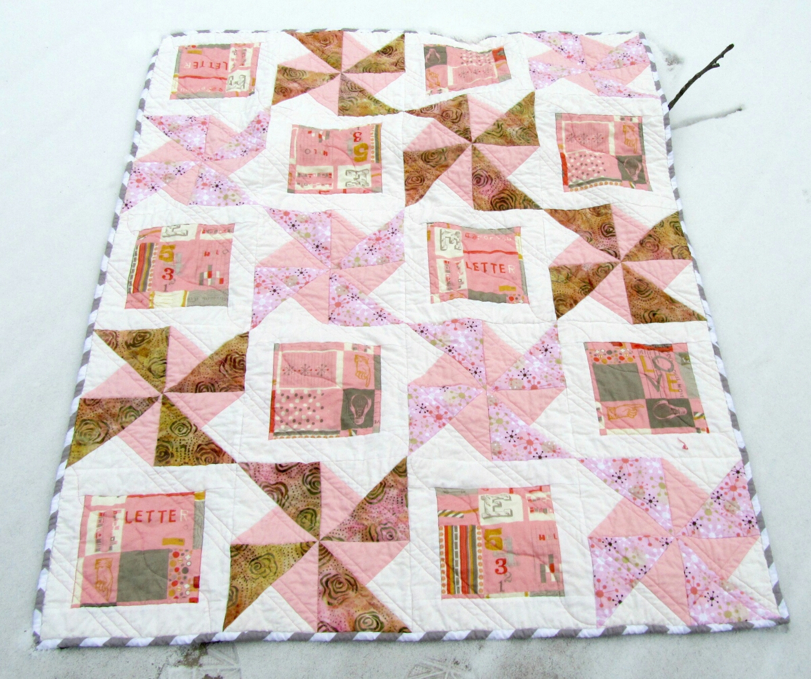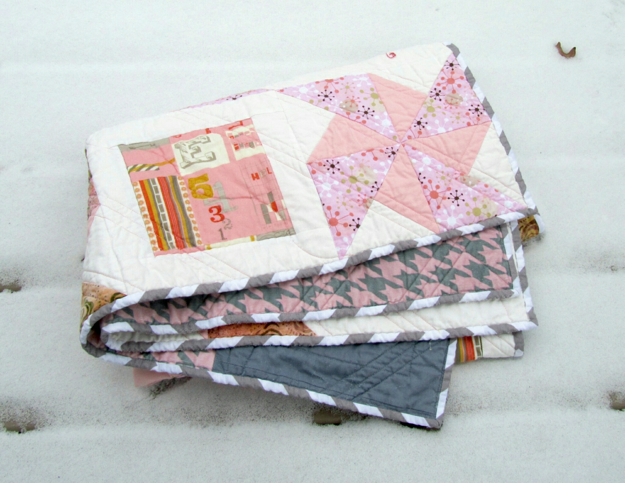 Today I finished a pretty little baby quilt for a new little cousin. It was inspired by the color of her room.
