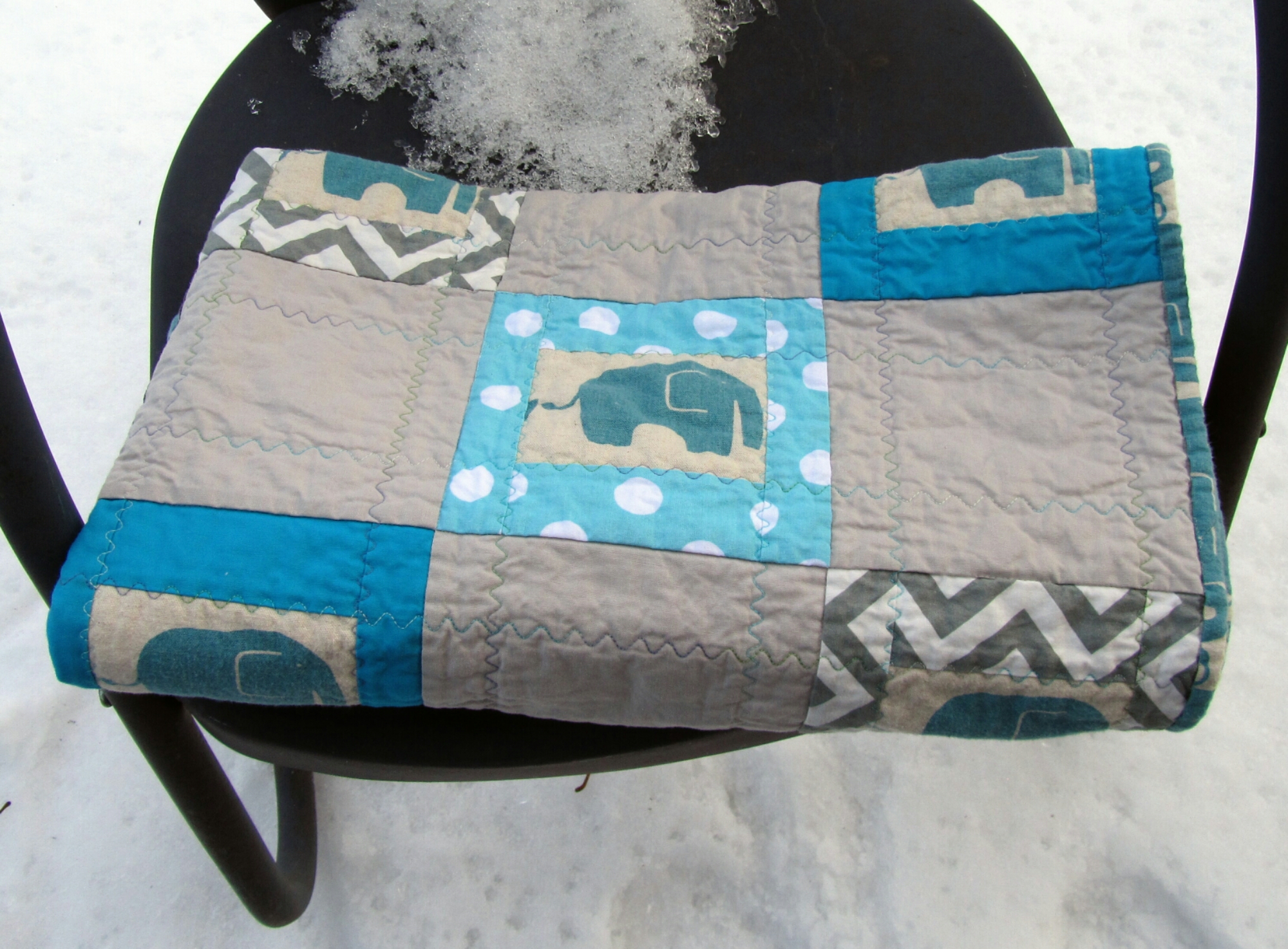 I took advantage of the Australia Day Sew In yesterday to finish up the second of the elephant baby quilts. Then I washed them both up for photos.